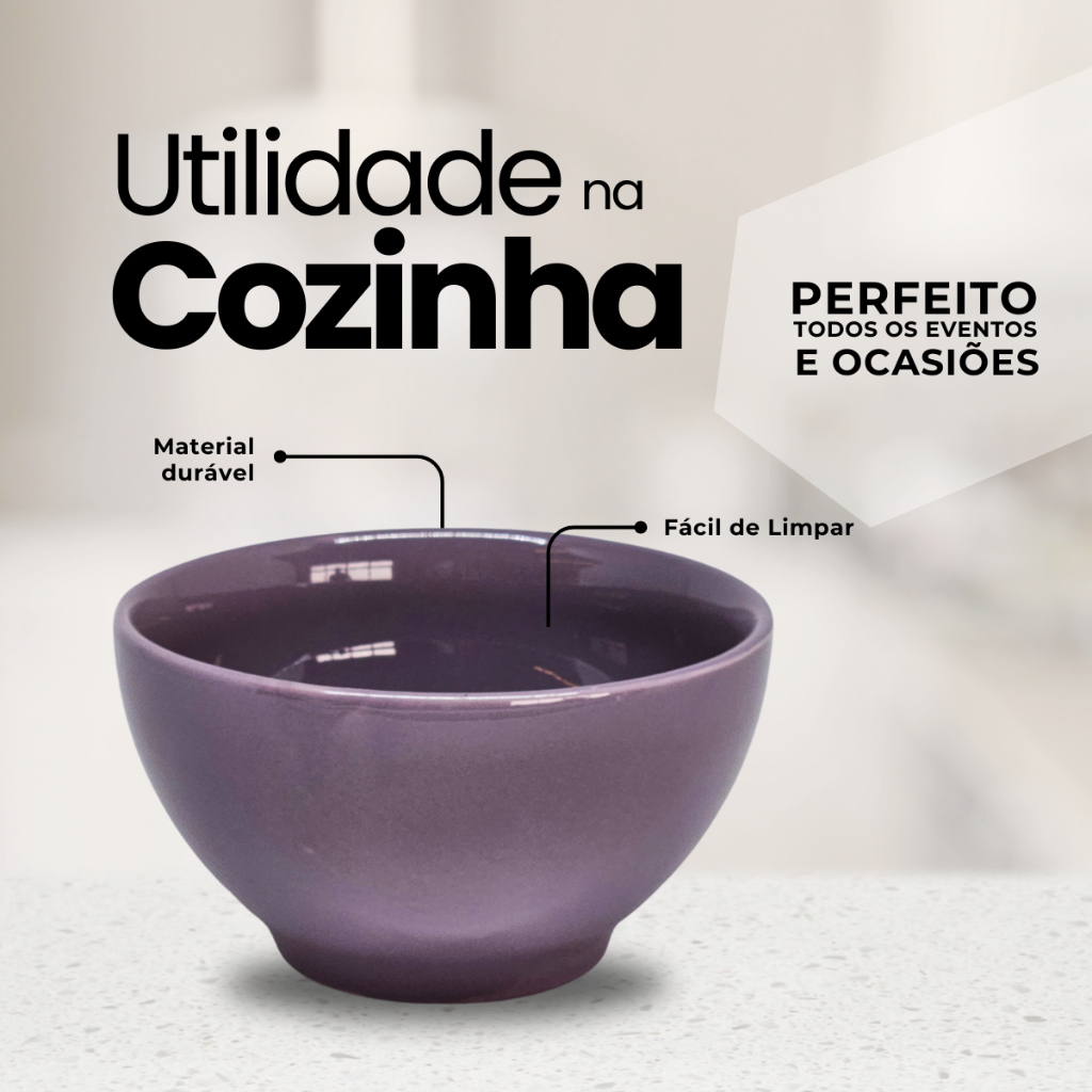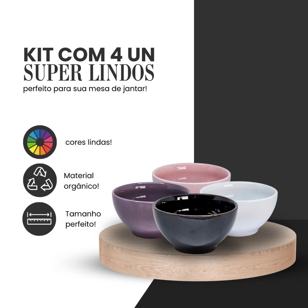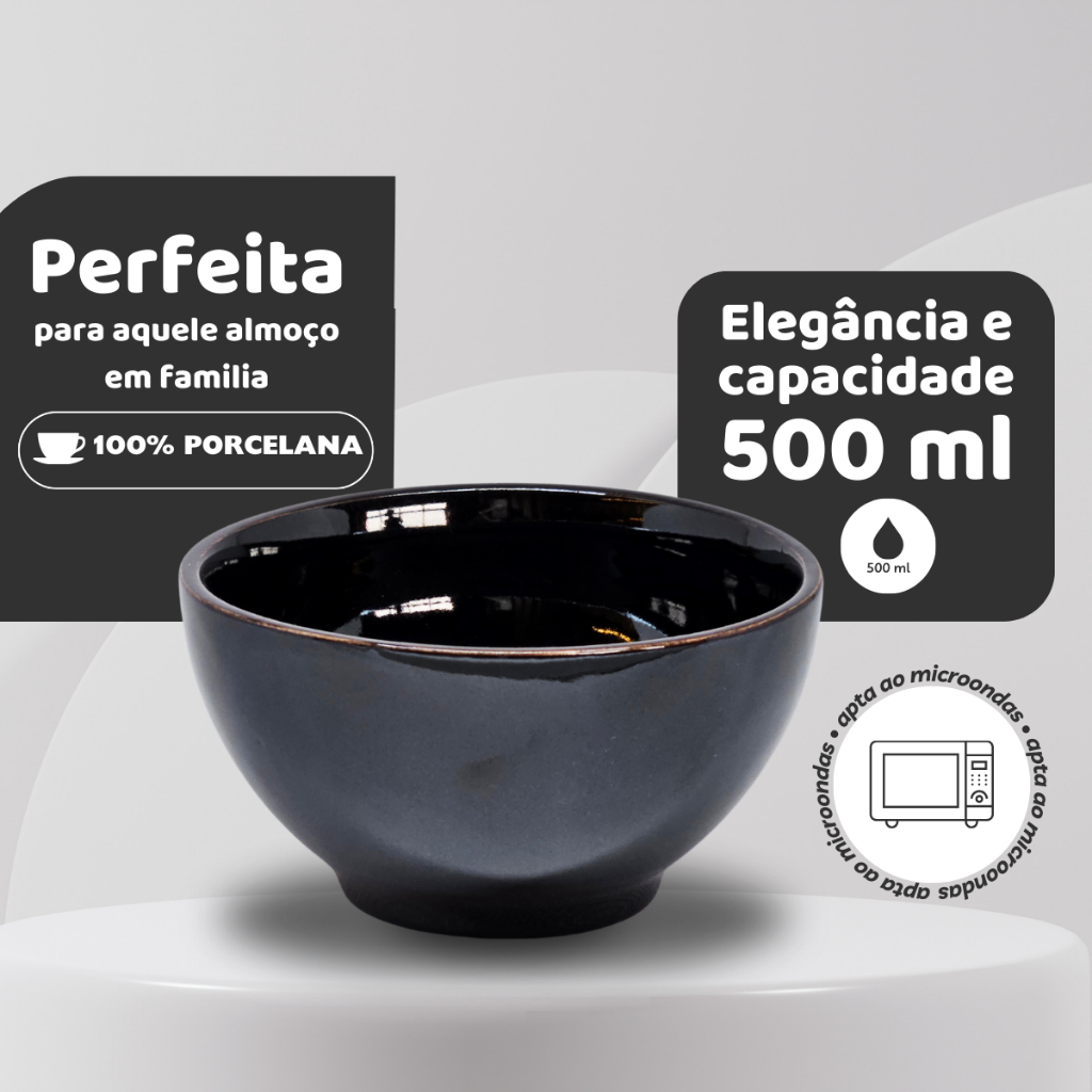 Kit 4 Bowls de Porcelana 500ml — Tigela Cumbuca Reforçada p/ Sopa, Café da Manhã, Caldos e CereaL
