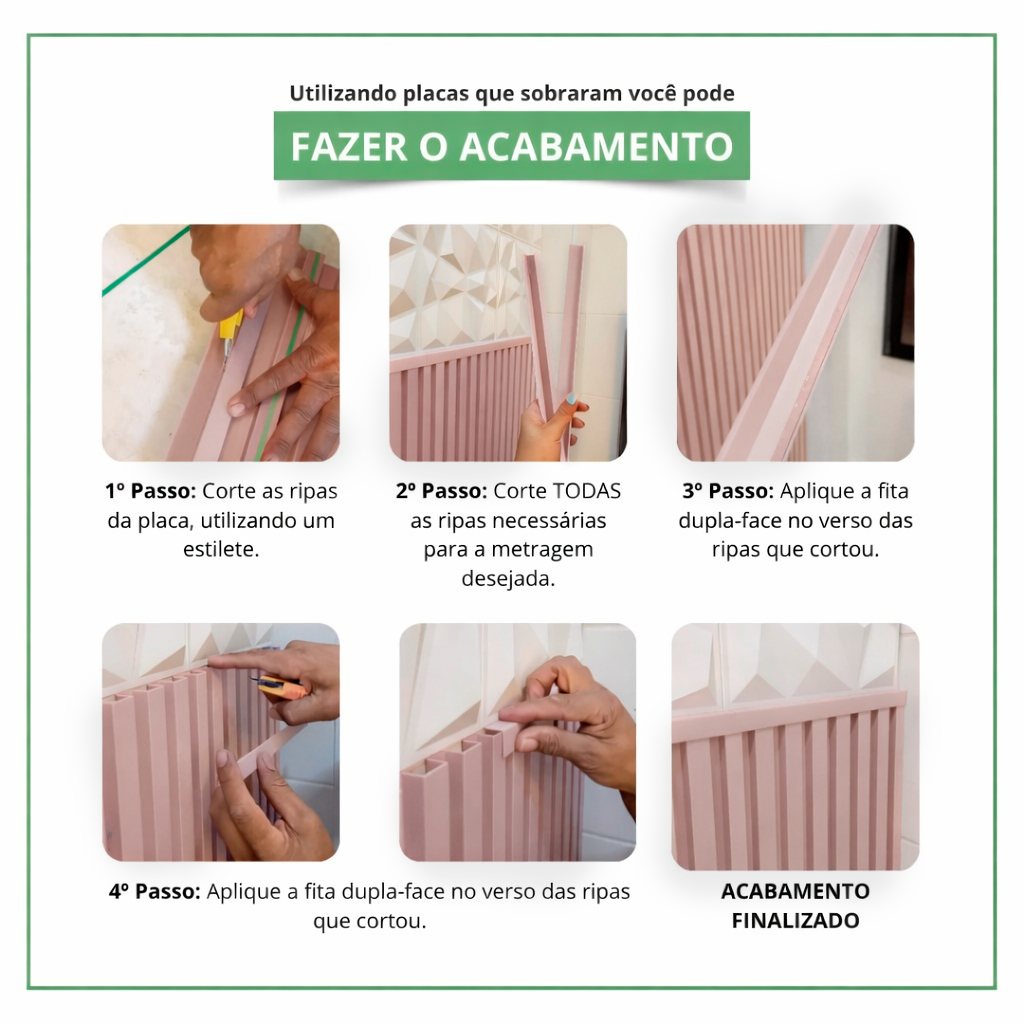 Kit 4m² Painel Ripado Nude Rosê 30x30 - 44 peças - Anti-impacto, Autocolante - Direct Borrachas