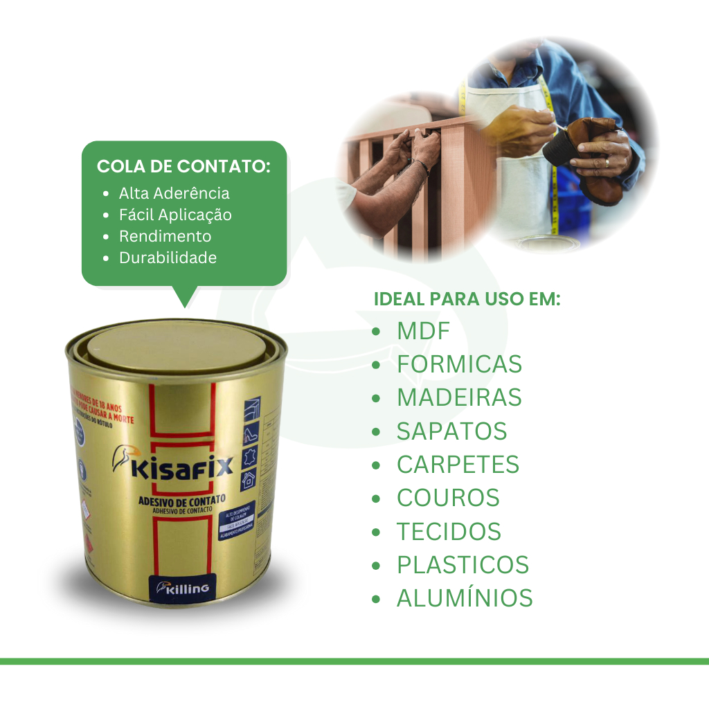 Cola de Contato Kisafix - Galão 2,8Kg Sapateiro, MDF, Couro, Tecidos, Platicos, Aluminios | Direct Borrachas