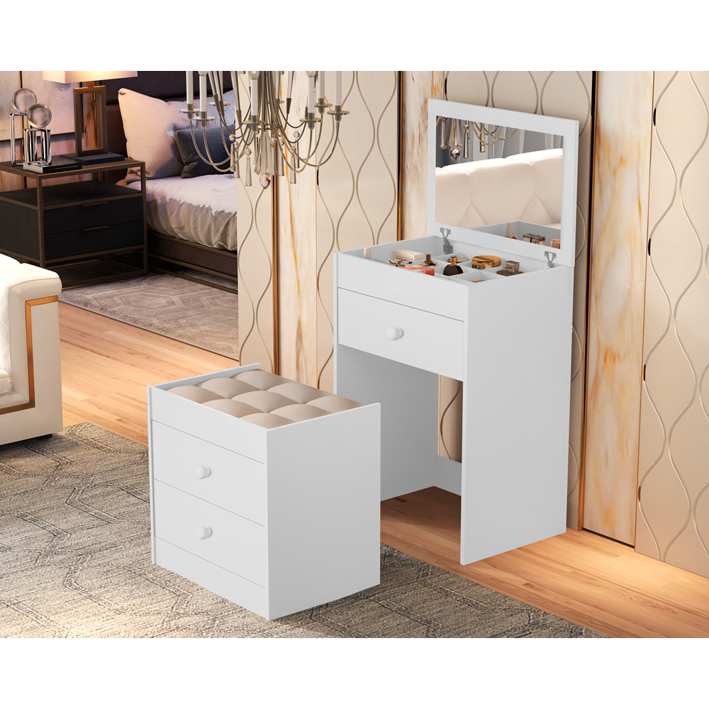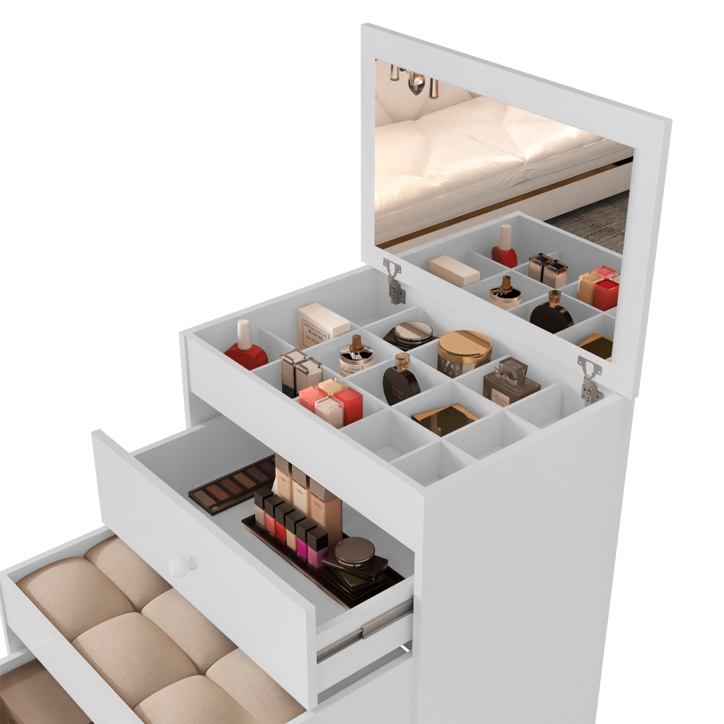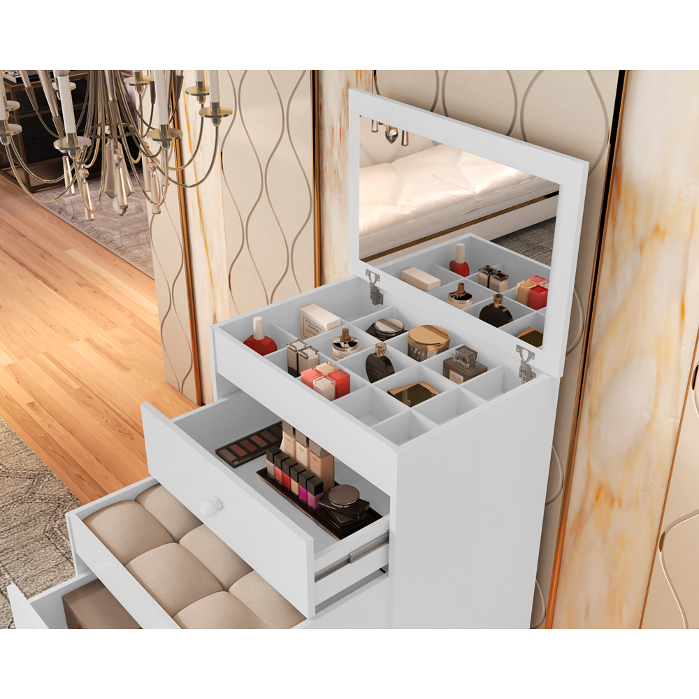 Penteadeira Cômoda Olivia 3 Gavetas C/espelho- Banqueta -Divisoria - Branco