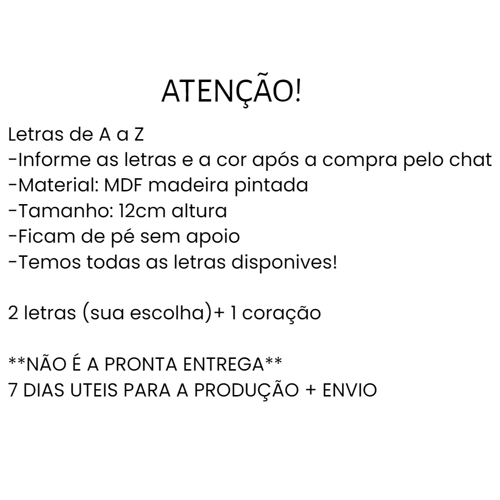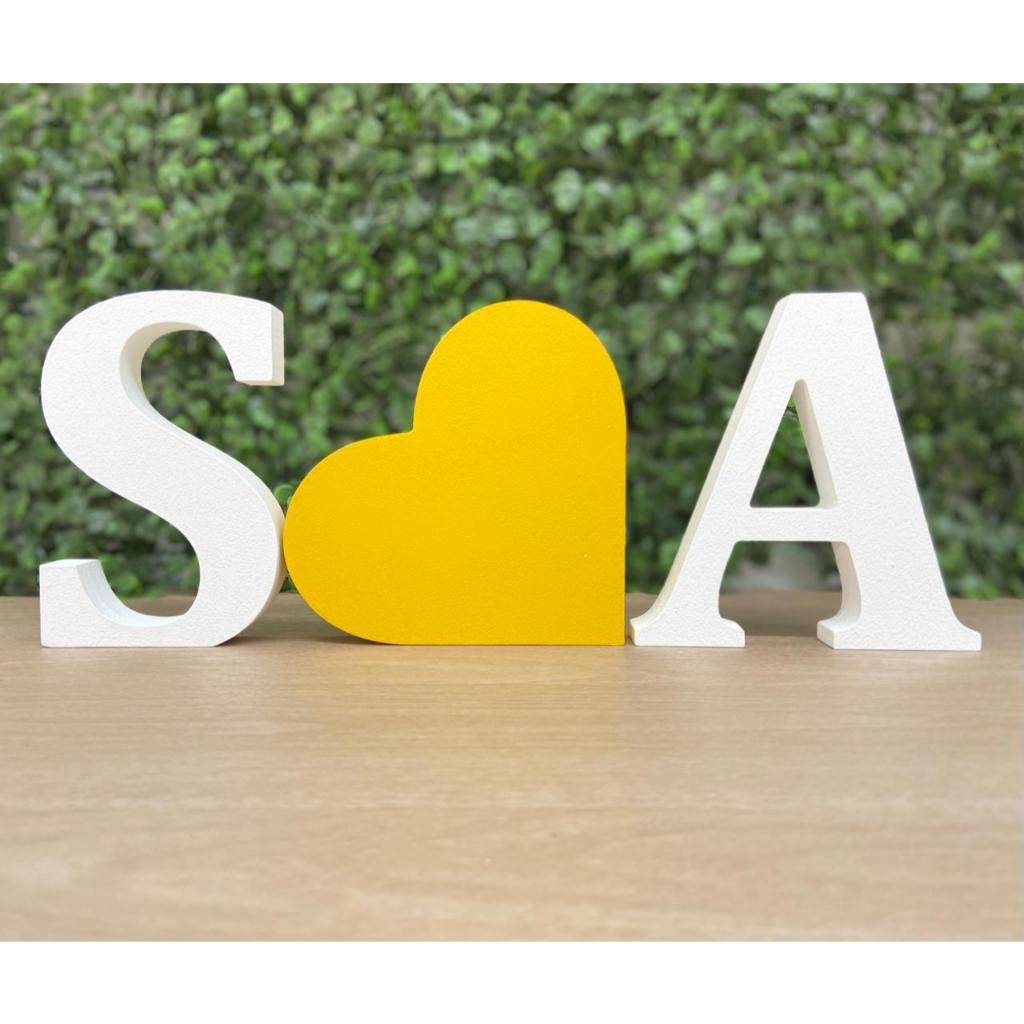 Kit 2 letras Inicias Mdf 12cm e 1 coração Casamento Festa Noiva Namorado Amarelo