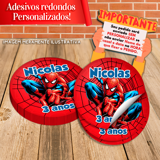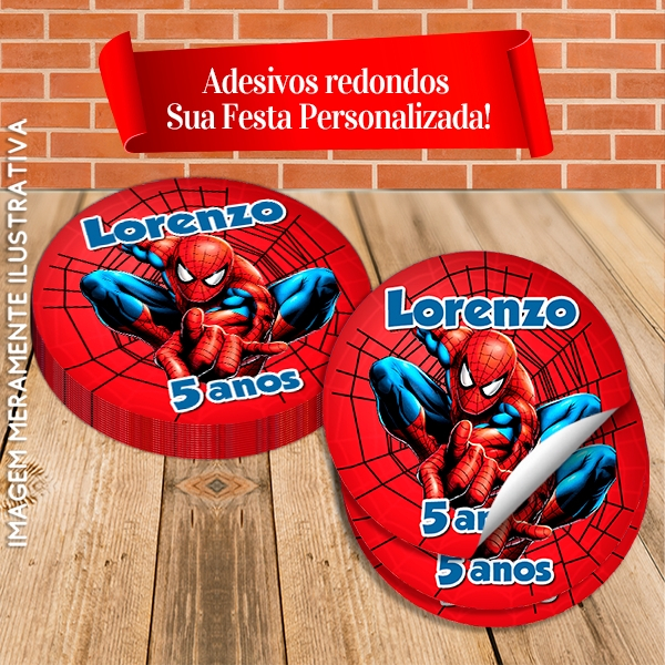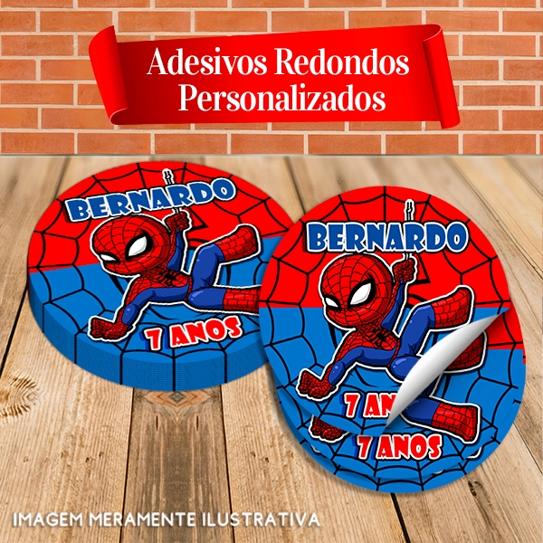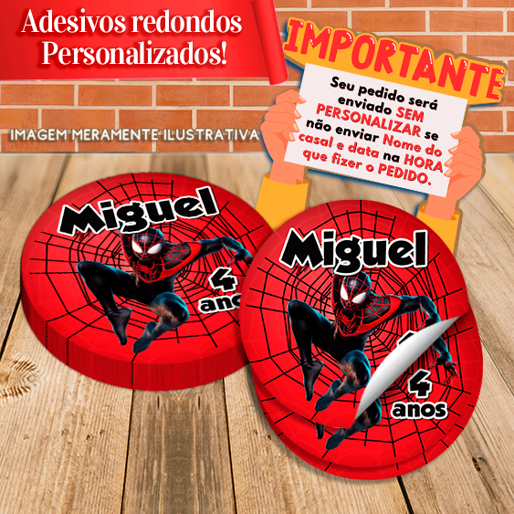 Rótulos Adesivos Redondos Personalizados Homem Aranha - Baby Cute - Preto Miles Morales