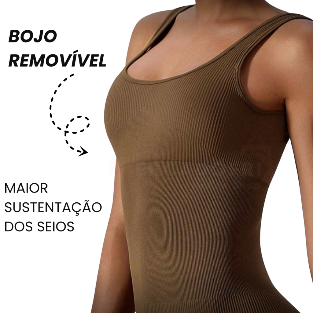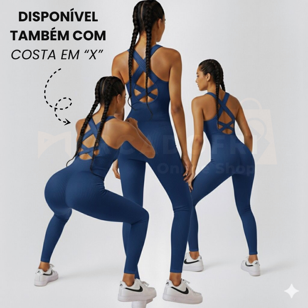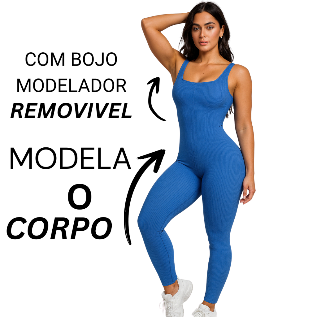 Macacão Longo Canelado Feminino com Bojo Removível Academia Fitness Zero Transparência Malha Premium