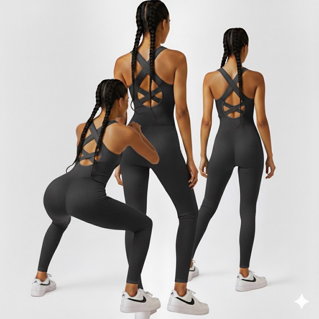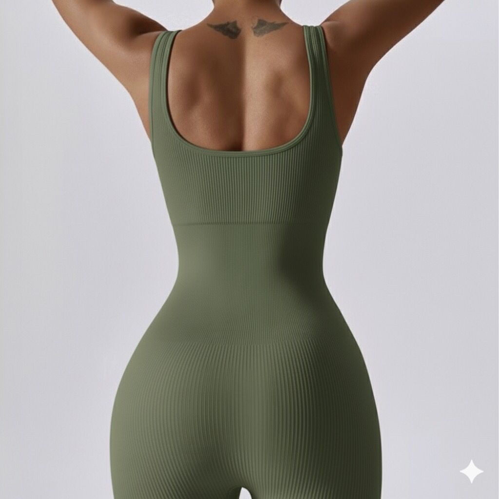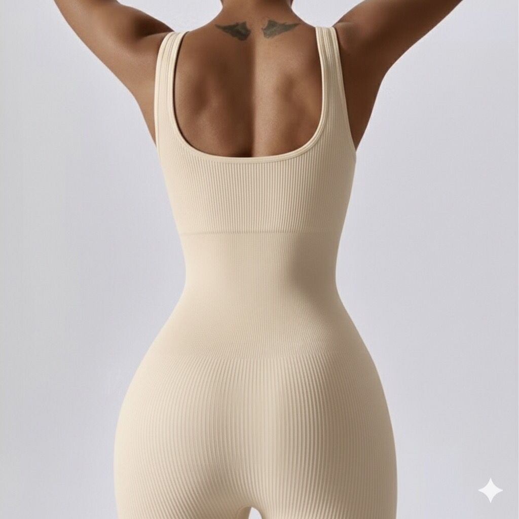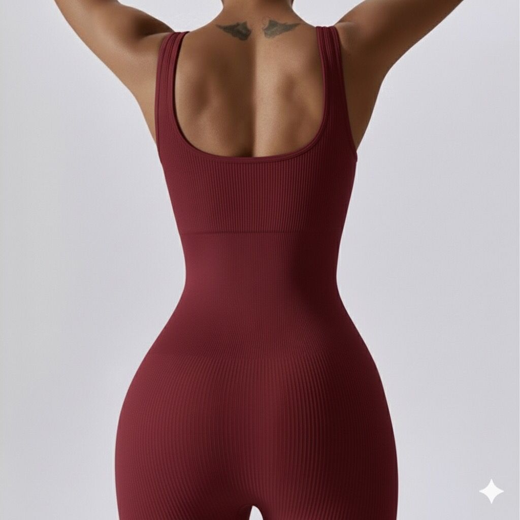 Macacão Longo Canelado Feminino com Bojo Removível Academia Fitness Zero Transparência Malha Premium