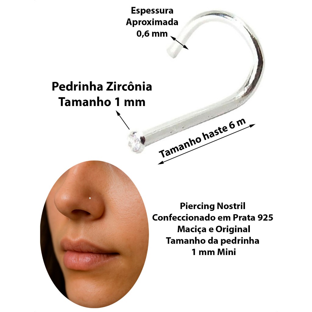 Piercing Nariz Nostril Ponto De Luz Pedrinha Pequena Prata