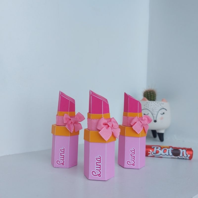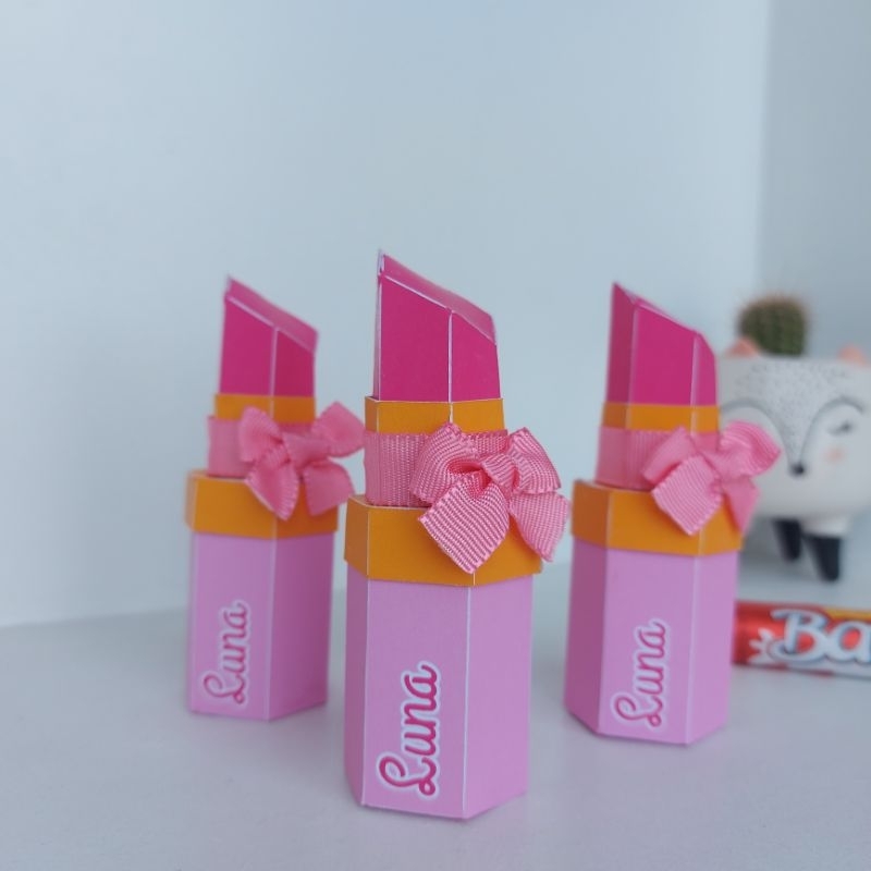 Caixa Batom 3D - Rosa Luxo - Festa Infantil - Lembrancinhas Personalizadas - Caixinhas Personalizadas - Papelaria