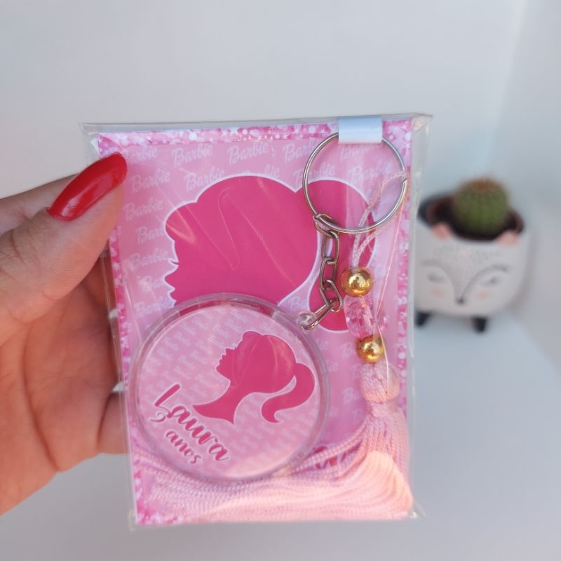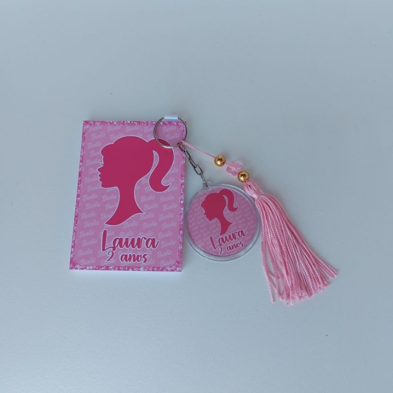 Kit Lembrancinha para Festa: 10 Chaveiros + 10 Bloquinhos - Personalizados Boneca Fashion Rosa