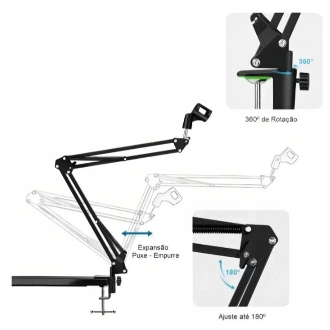 Suporte Microfone/Celular Com Braço Articulado E Ajustado Para Mesa