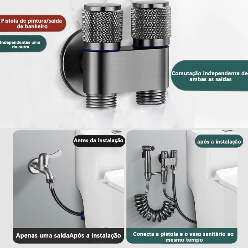 Kit Ducha Higiênica 5 em 1 - Duas Saídas 1/2 mm | Registro Conjunto | Pulverizador Incluído
