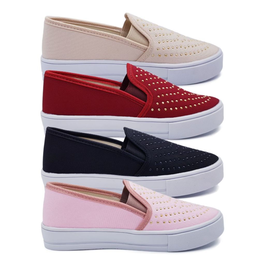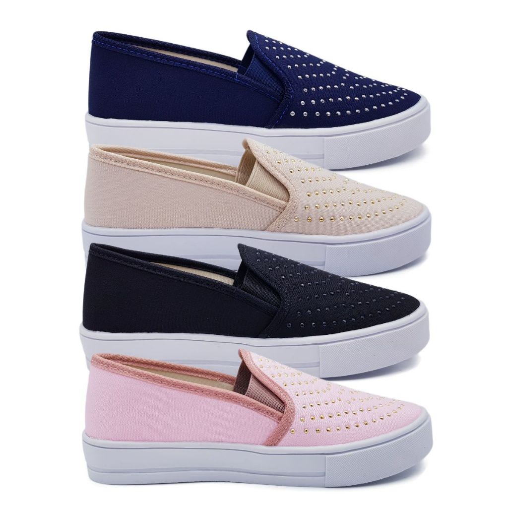 Kit 4 Pares Tênis Sapatilha Feminino Slip On Casual Básico Confortável Calce Fácil Sola Alta K107