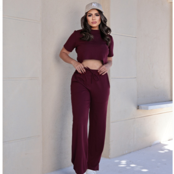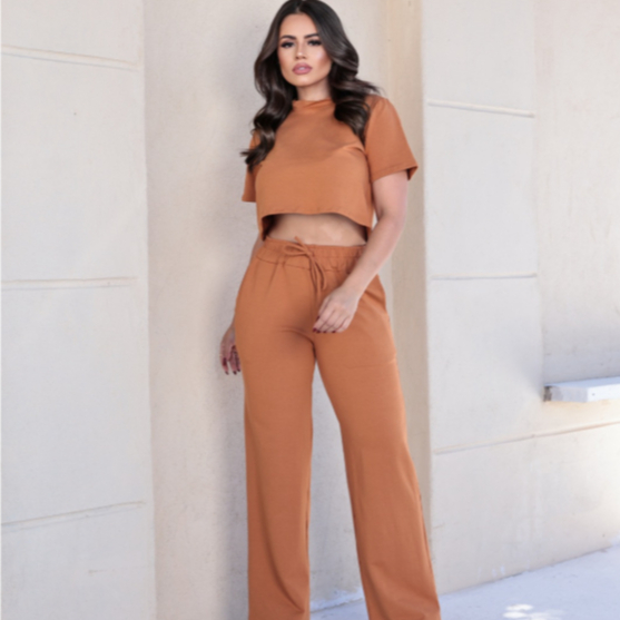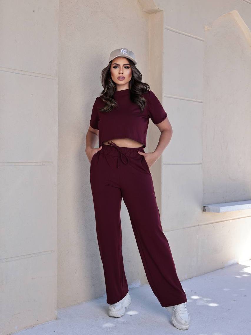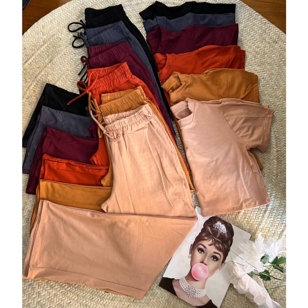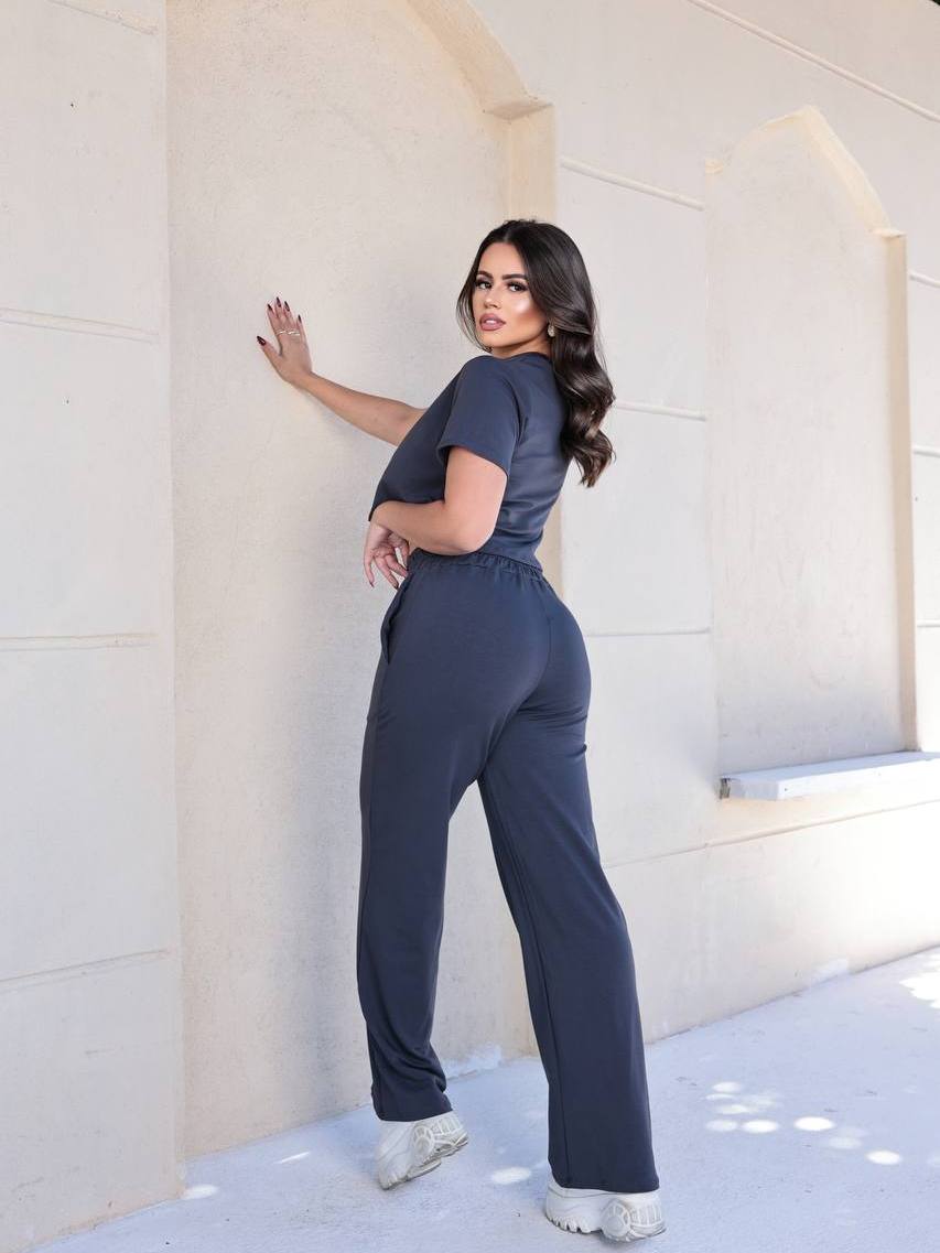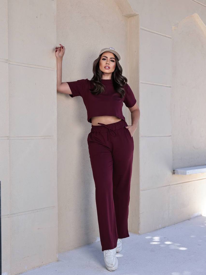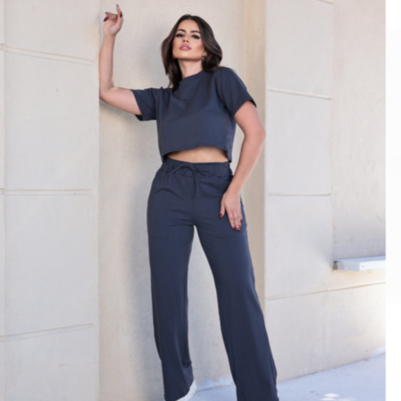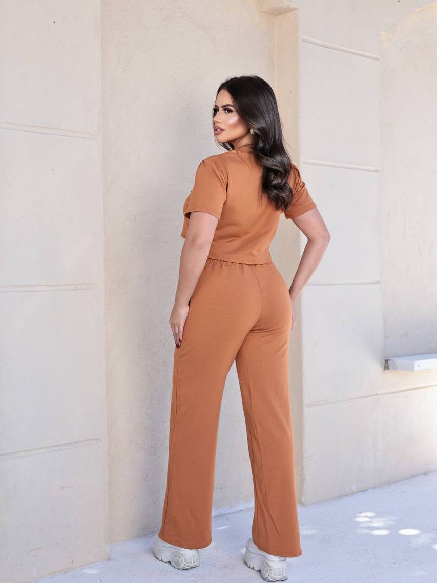 Conjunto de Moletinho Premium Calça Pantalona Blusa Mullet Manga Curta