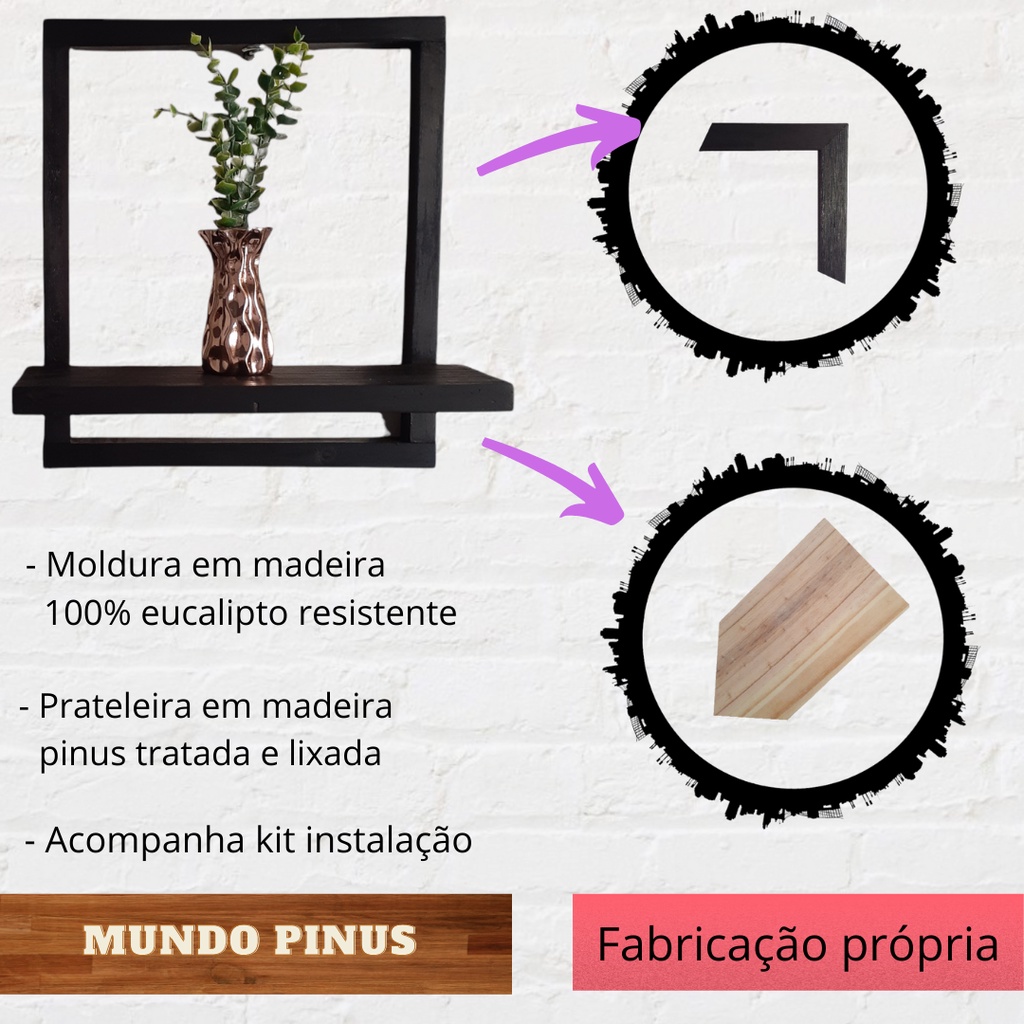 kit com 4 Prateleira Quadro Nicho Borda Preta 43x35/ 35x43 Grande Em Pinus Madeira Borda Preta Painel Decorativo