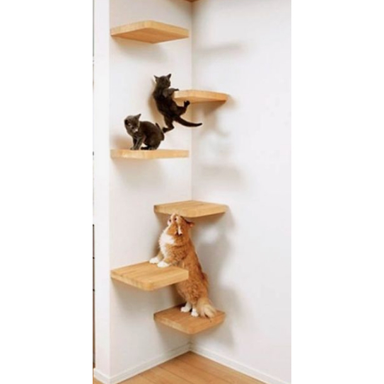 Kit 10 Prateleiras escadas para gatos gatil playground em madeira pinus de parede
