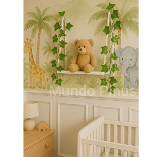 Prateleira Infantil Quarto Tema Safari 2 andar com Plantas verde