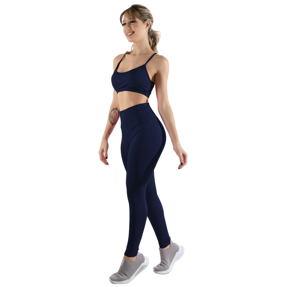 Conjunto Fitness Feminino Top Alcinha + Calça Cintura Alta Academia Conforto Modelador