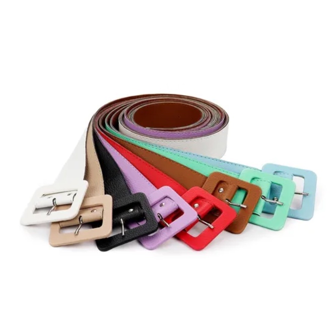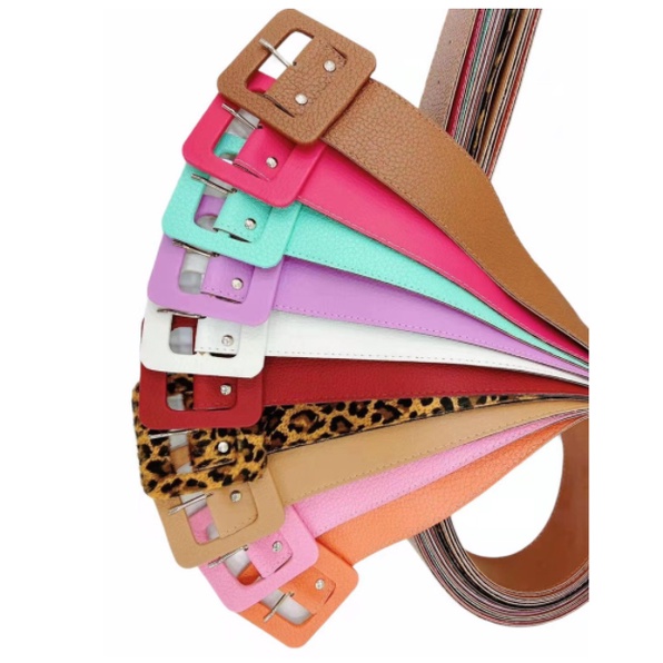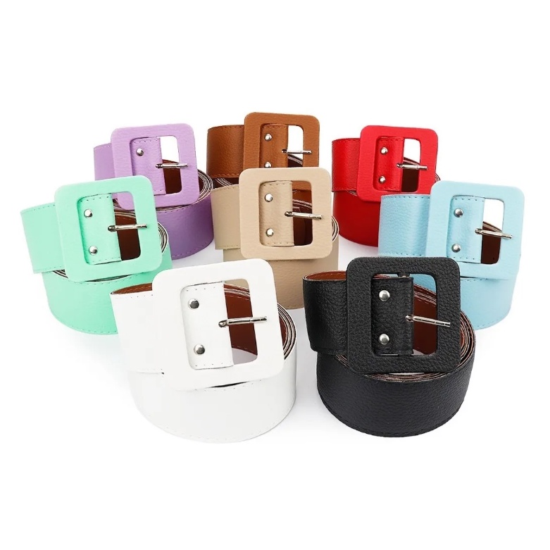 KIT 06 Cinto Femininos Coloridos Couro Fivela Quadrada Plus Size HL-111