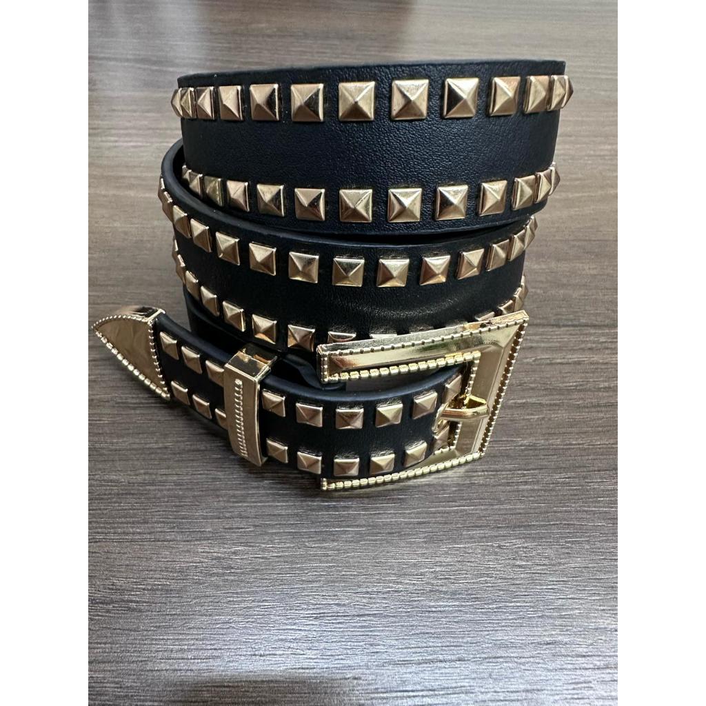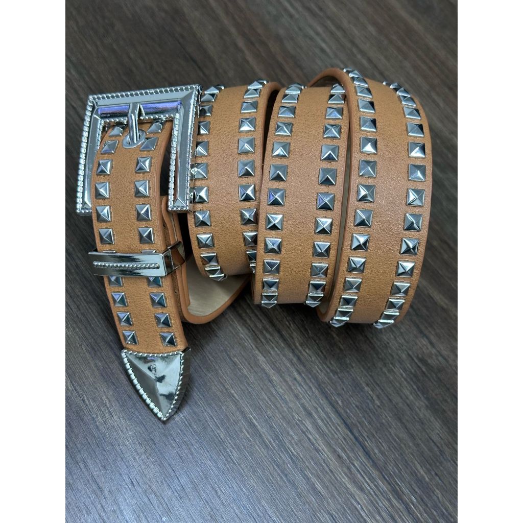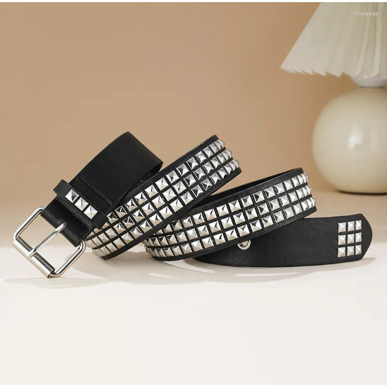 Cinto Unissex De Cintura Decorado Com Lantejoulas Prata Estilo Punk MZS-411