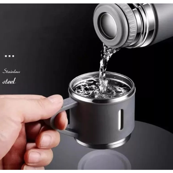 Garrafa com 2 Xícara Térmica Inox 500ML Água Café Chá Caneca Frio Quente