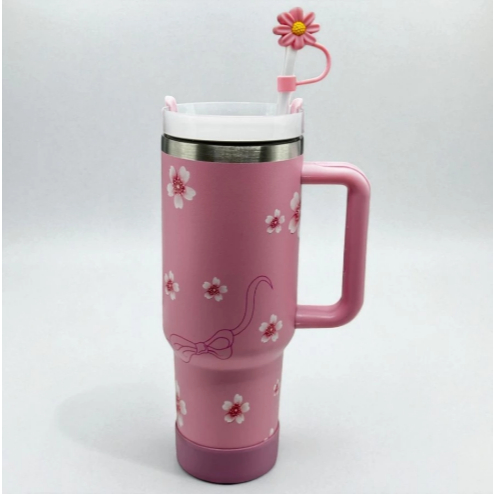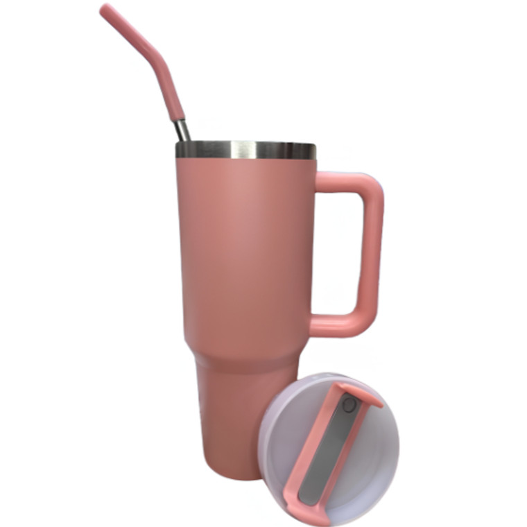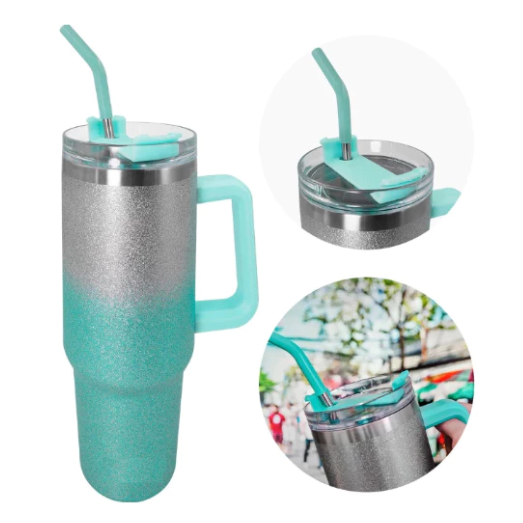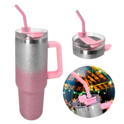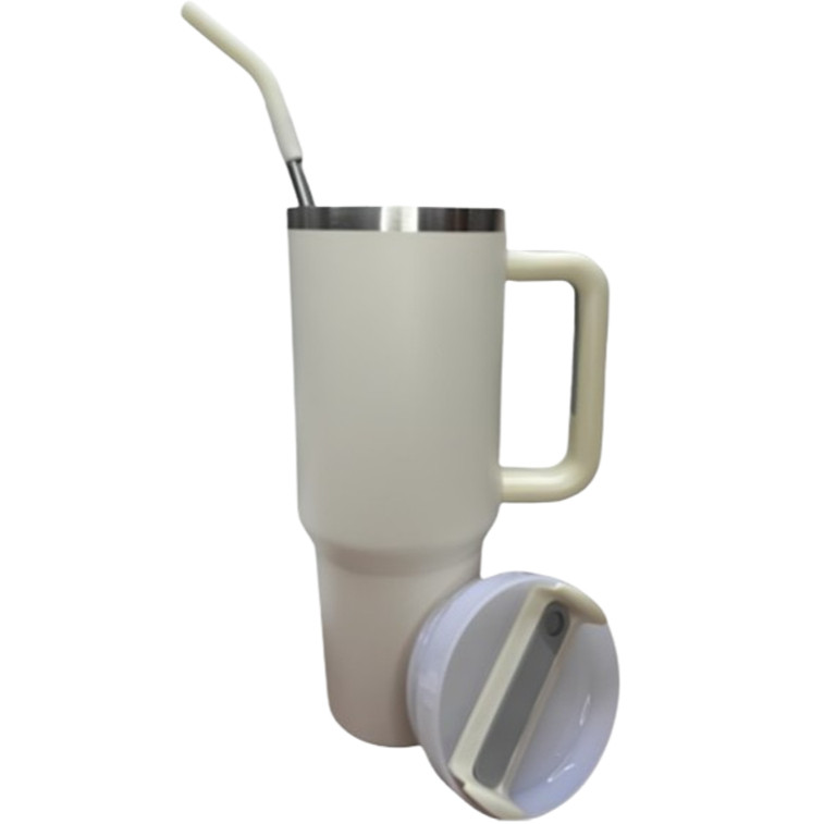 Copo Térmico Grande 1200ML Com Alça Com Canudo Em Metal Garrafa Em Aço Inoxidável
