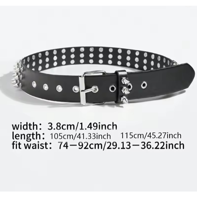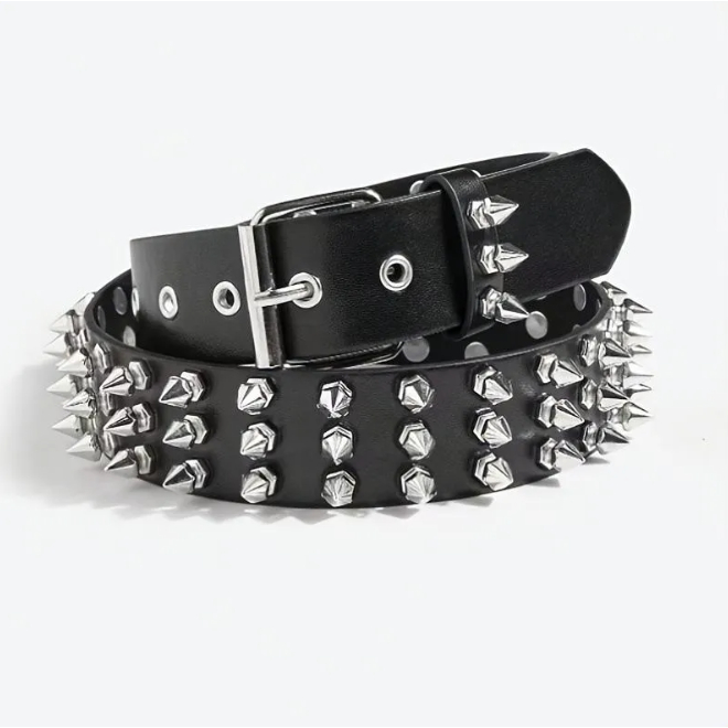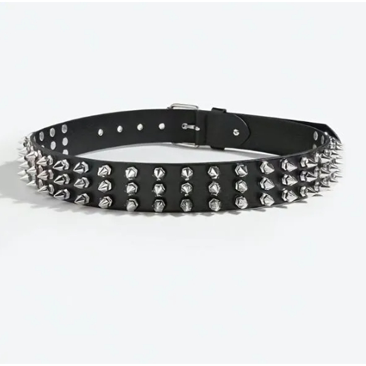 Cinto Rebite Punk Rock Preto Estilo Gótico Unissex Couro Sintético