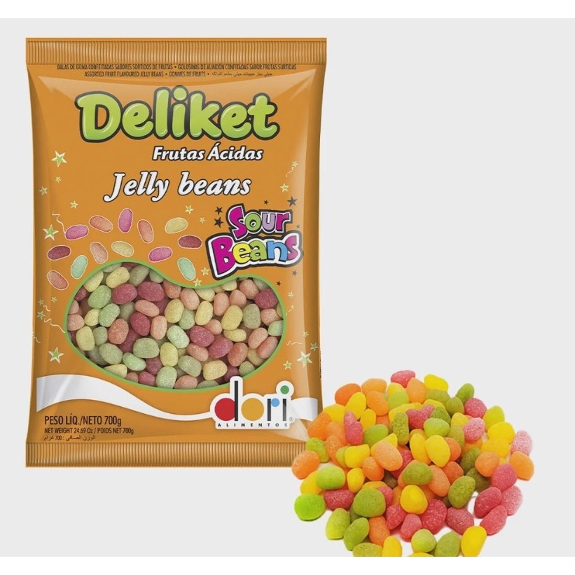Bala de Goma Confeitada Deliket Jelly Beans Frutas Sortidas Ácidas 700g - Dori