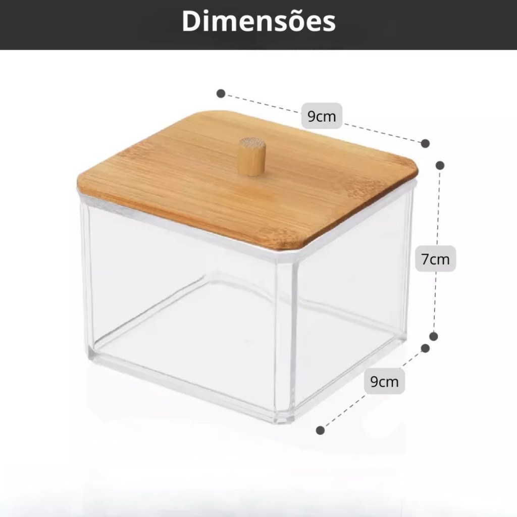 Porta Algodão E Cotonete C/ Tampa De Bambu Organizador Plástico