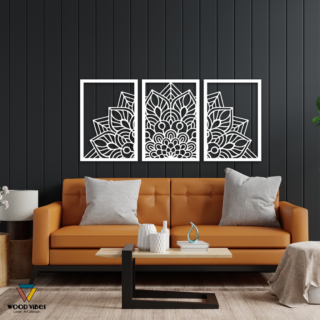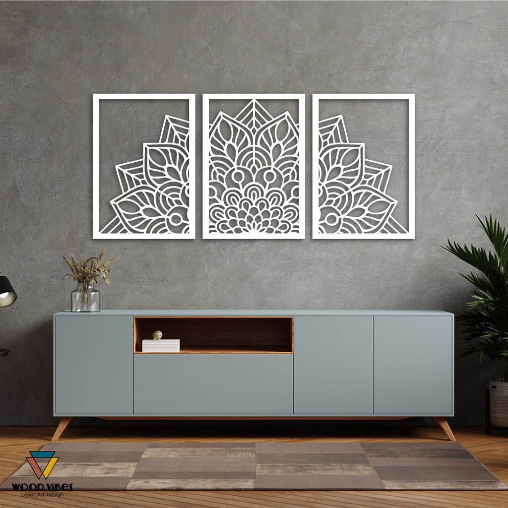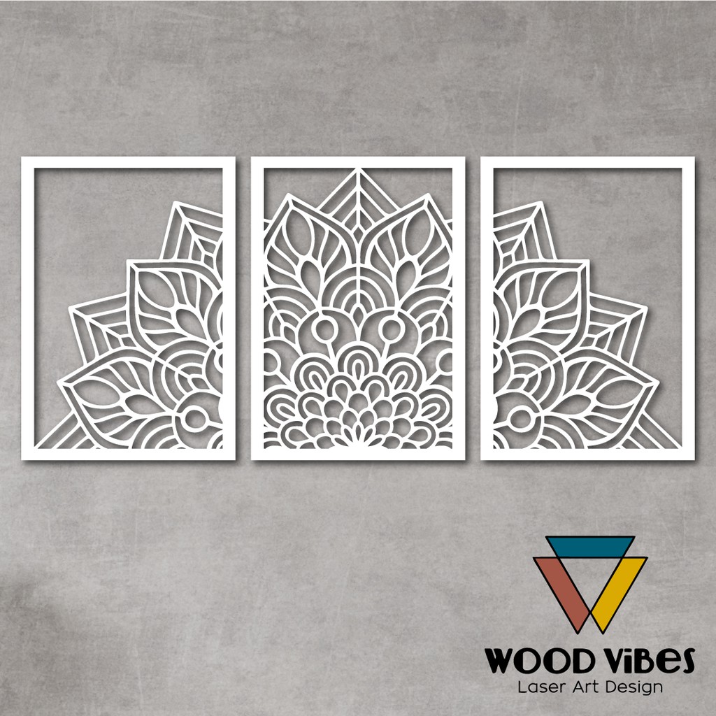 Trio Painéis Mandala Vazada Decorativa MDF