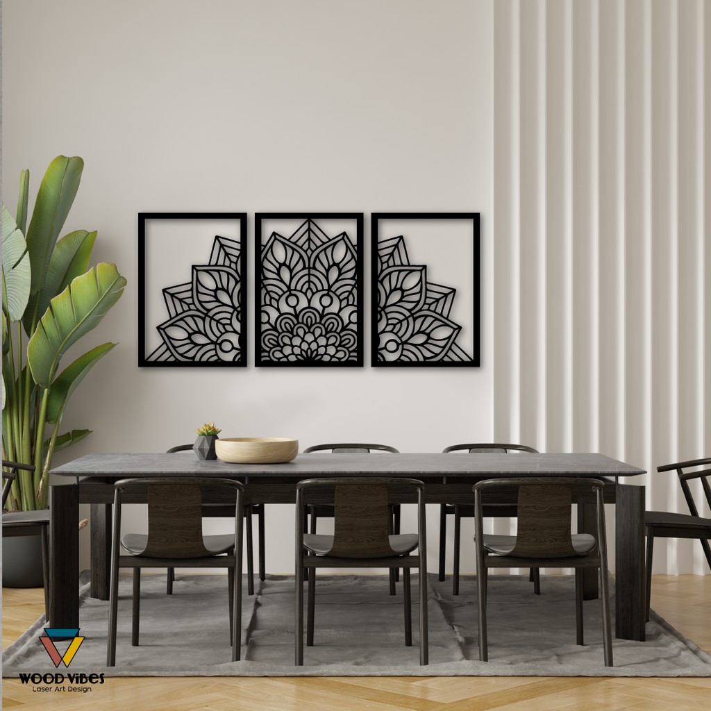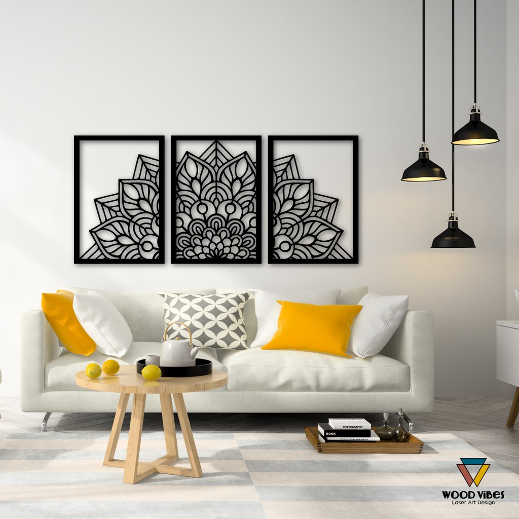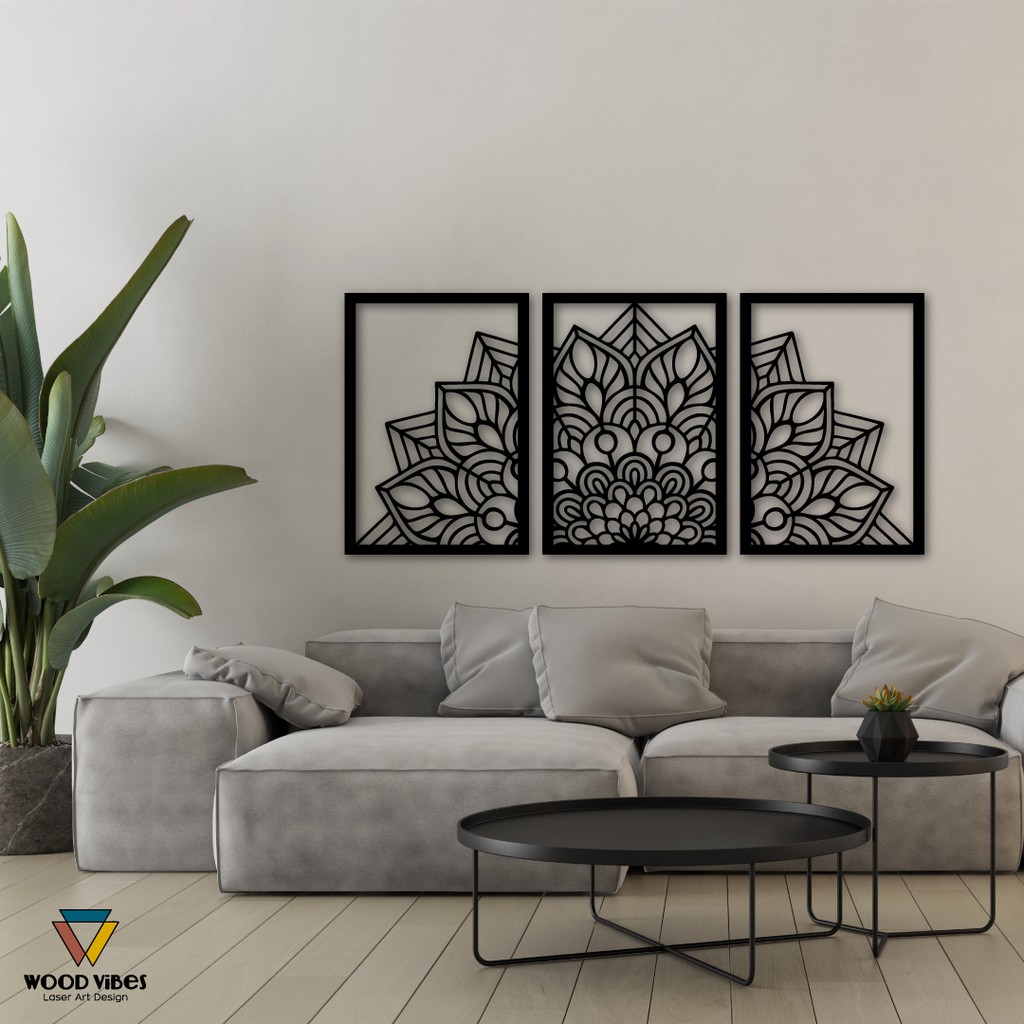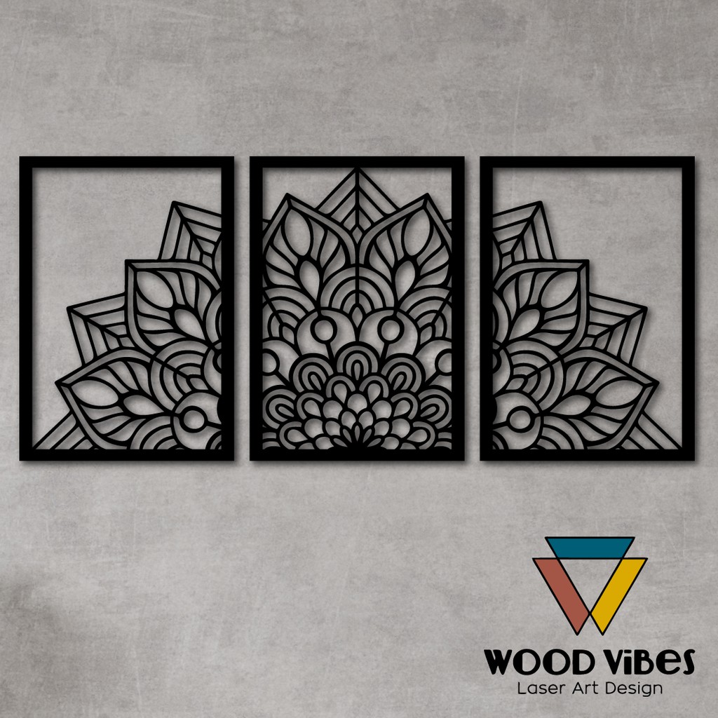 Trio Painéis Mandala Vazada Decorativa MDF