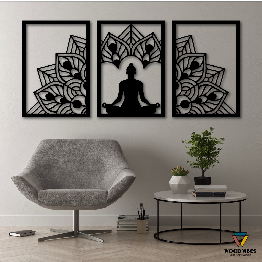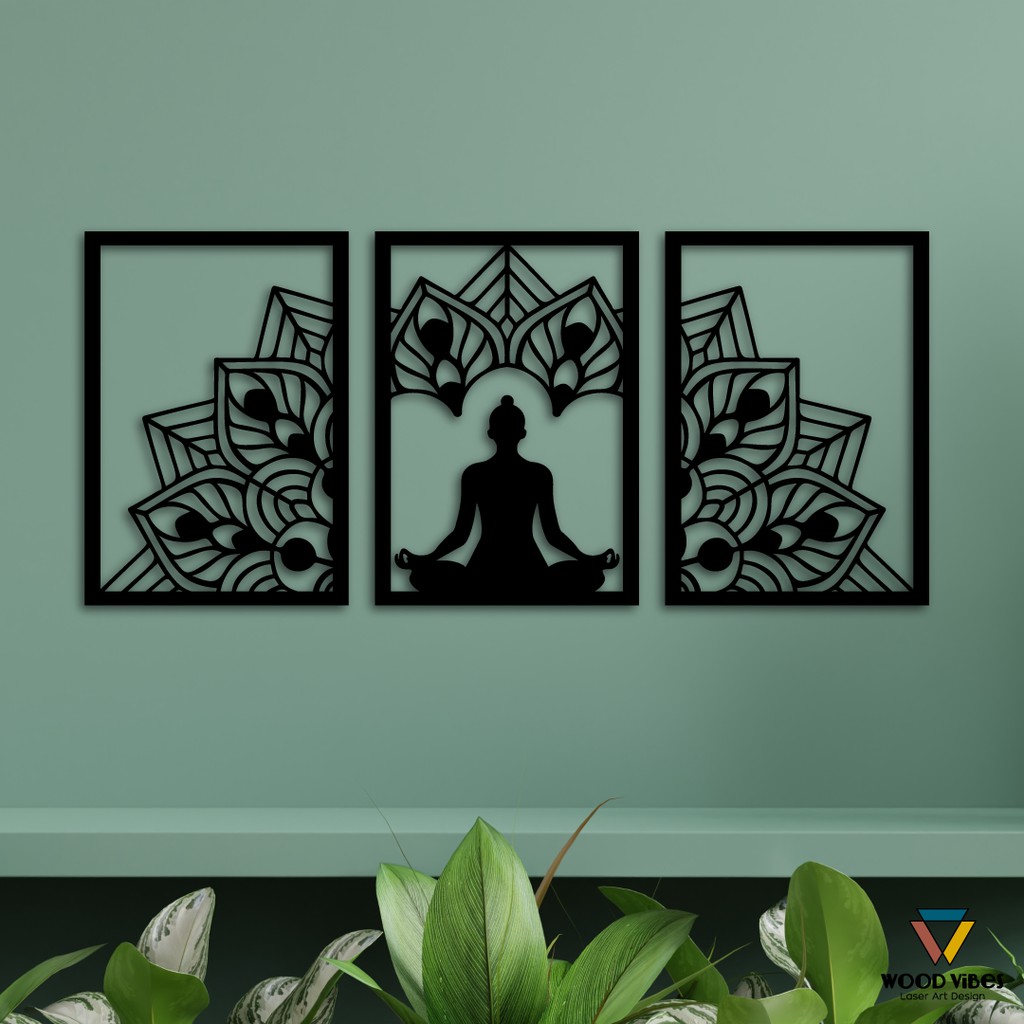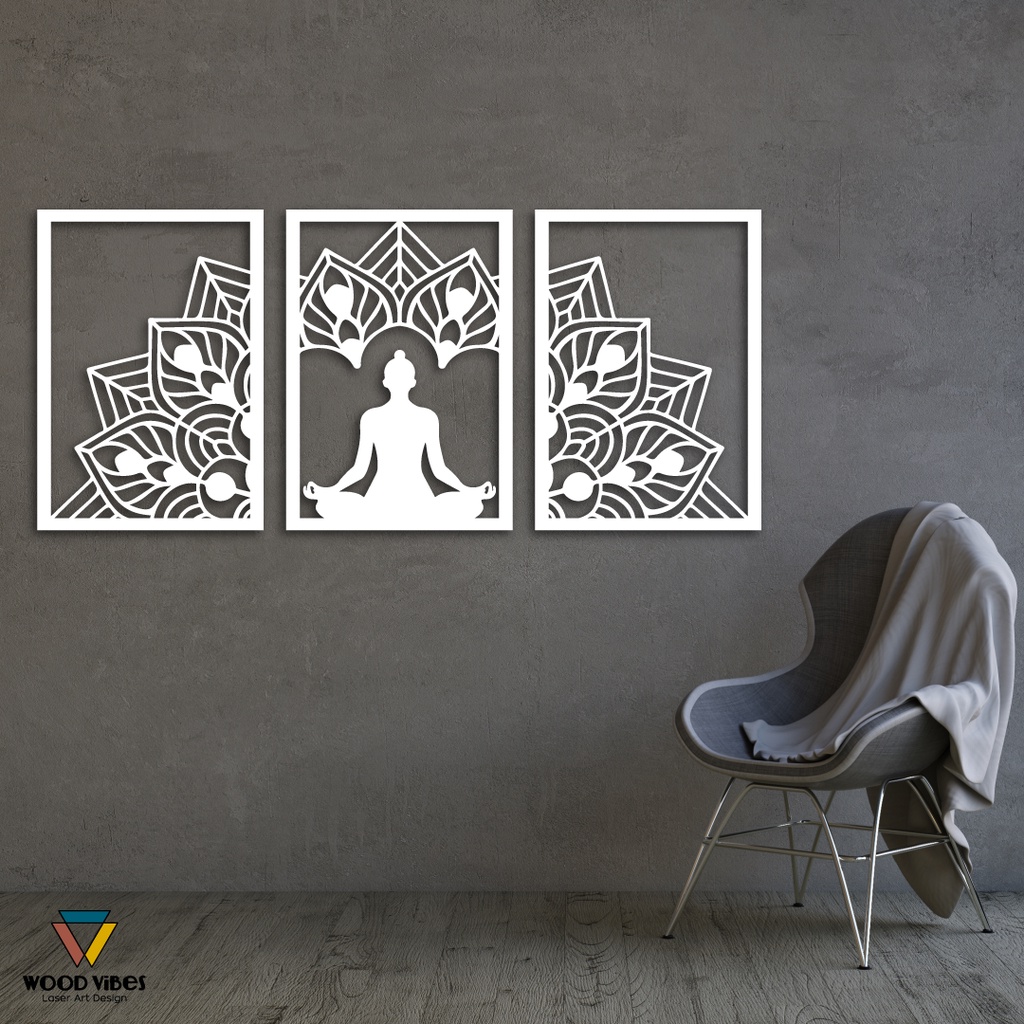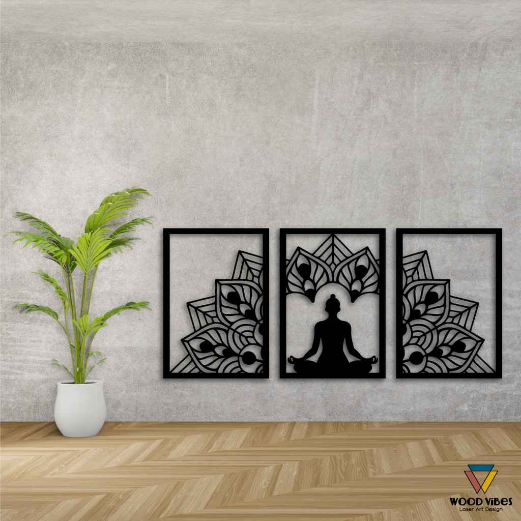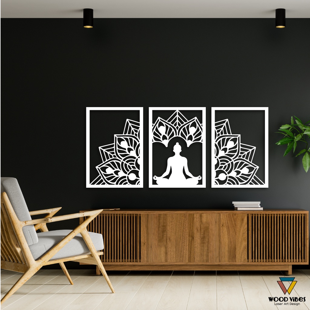 Kit Quadros Mandala Meditação Vazada Decorativa MDF