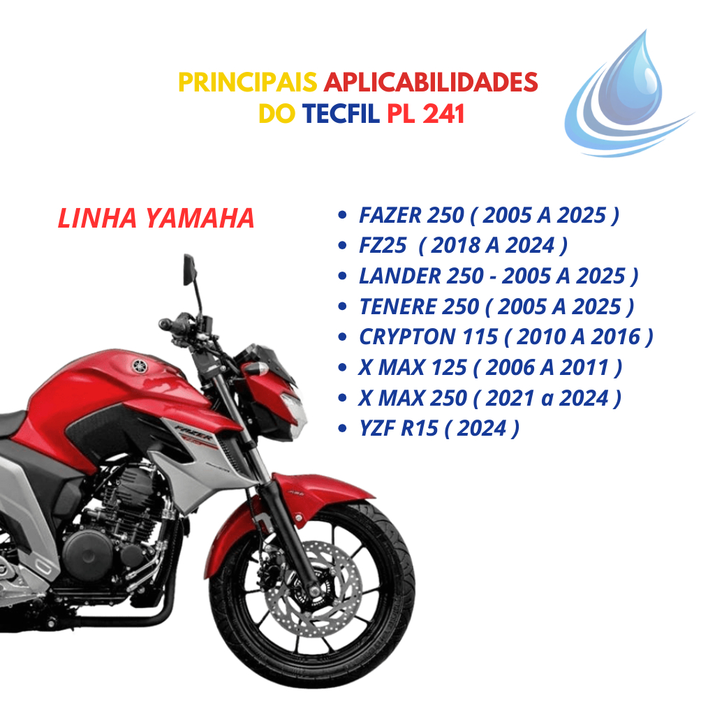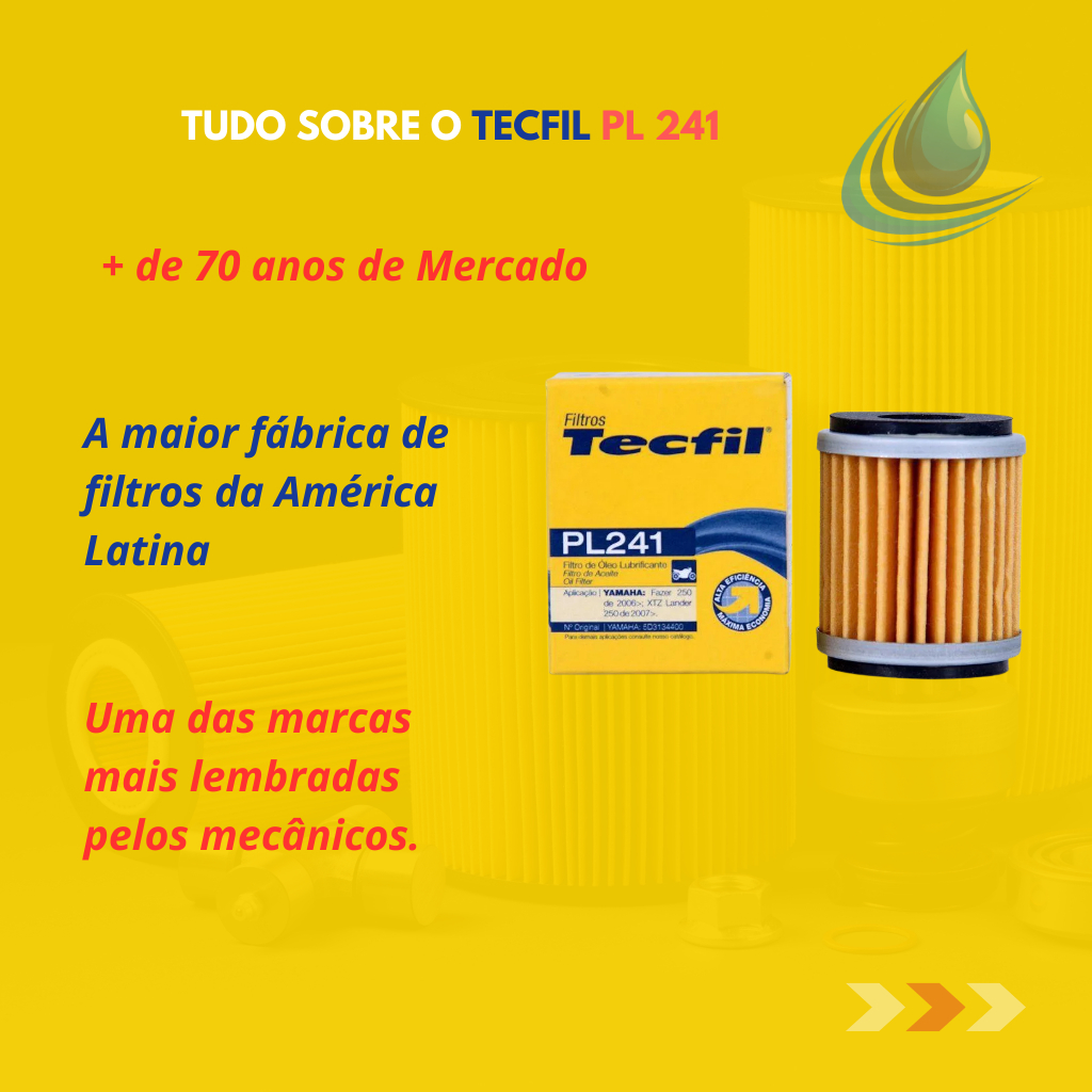Filtro De Oleo PL241 Tecfil Moto Yamaha Lander, Crypton , Ténéré , Fazer 250