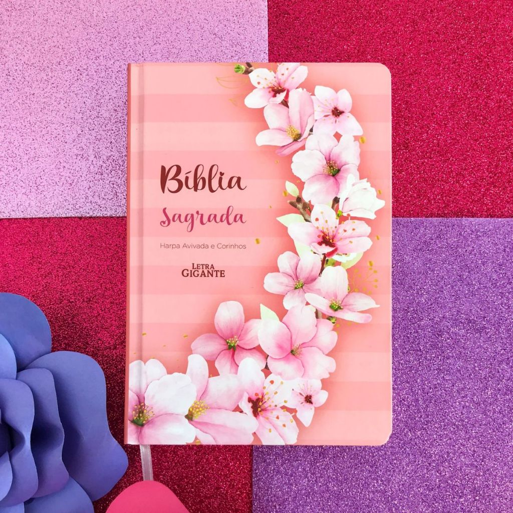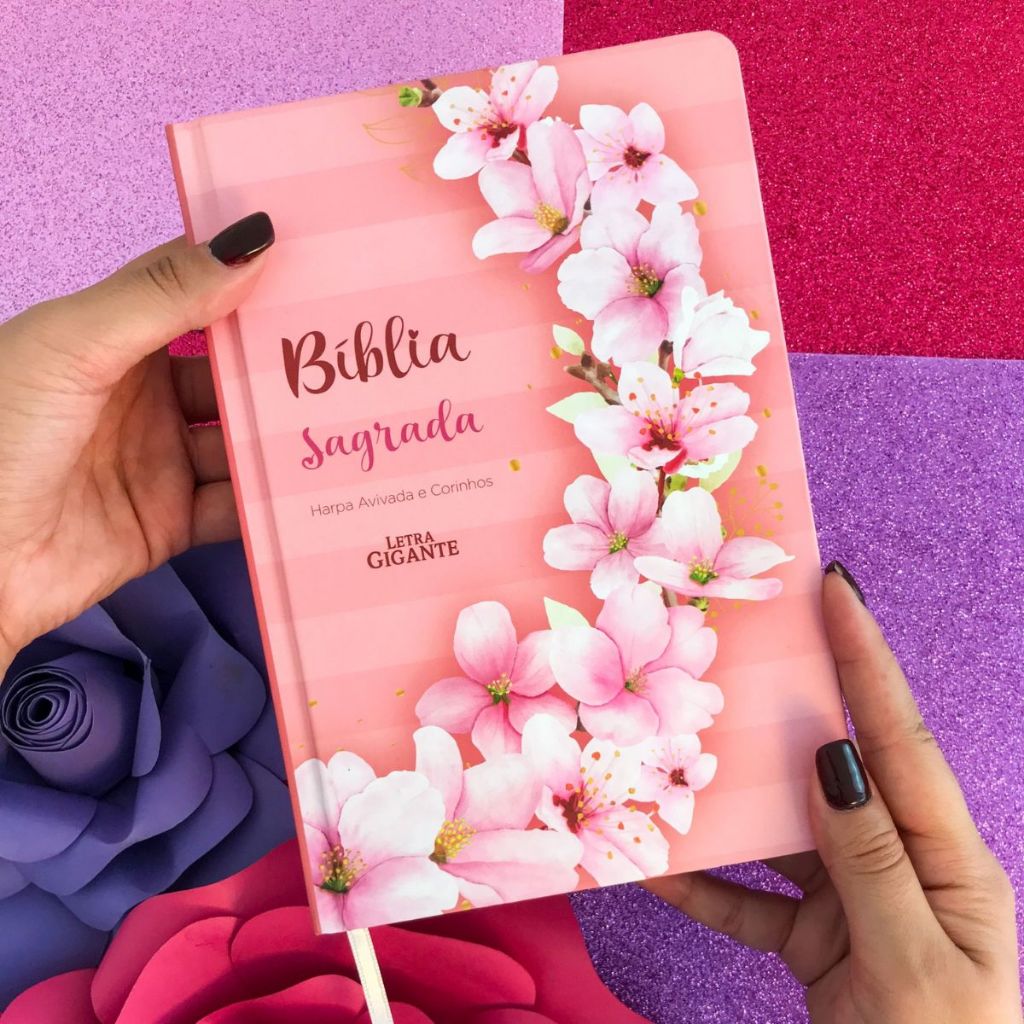 Biblia Sagrada RC Letra Gigante Com Harpa Avivada E Corinhos Capa Dura Ramos Flores