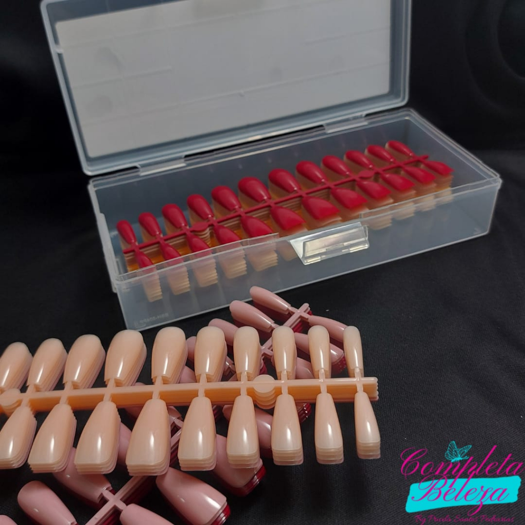 Unhas Postiças Colorida Tons Nude e Vermelho Bailarina D&Z 480 Unidades