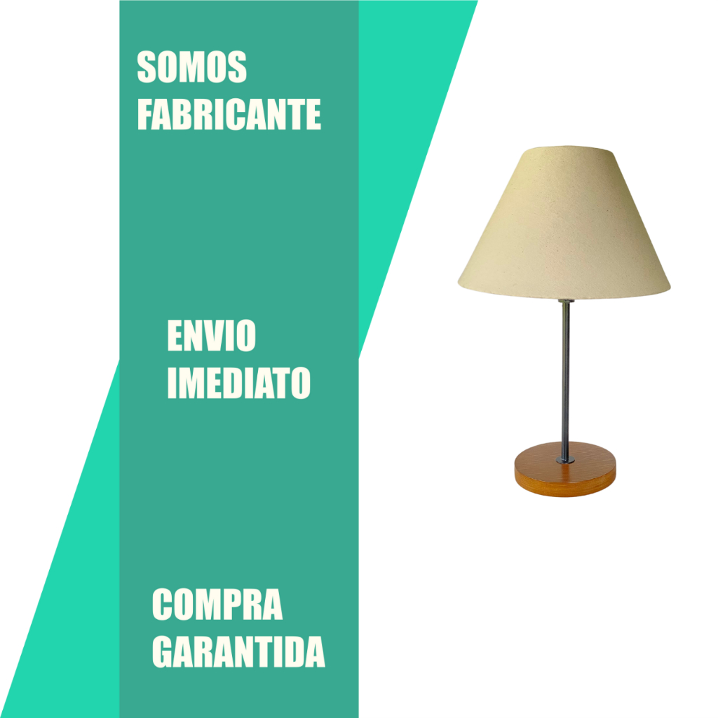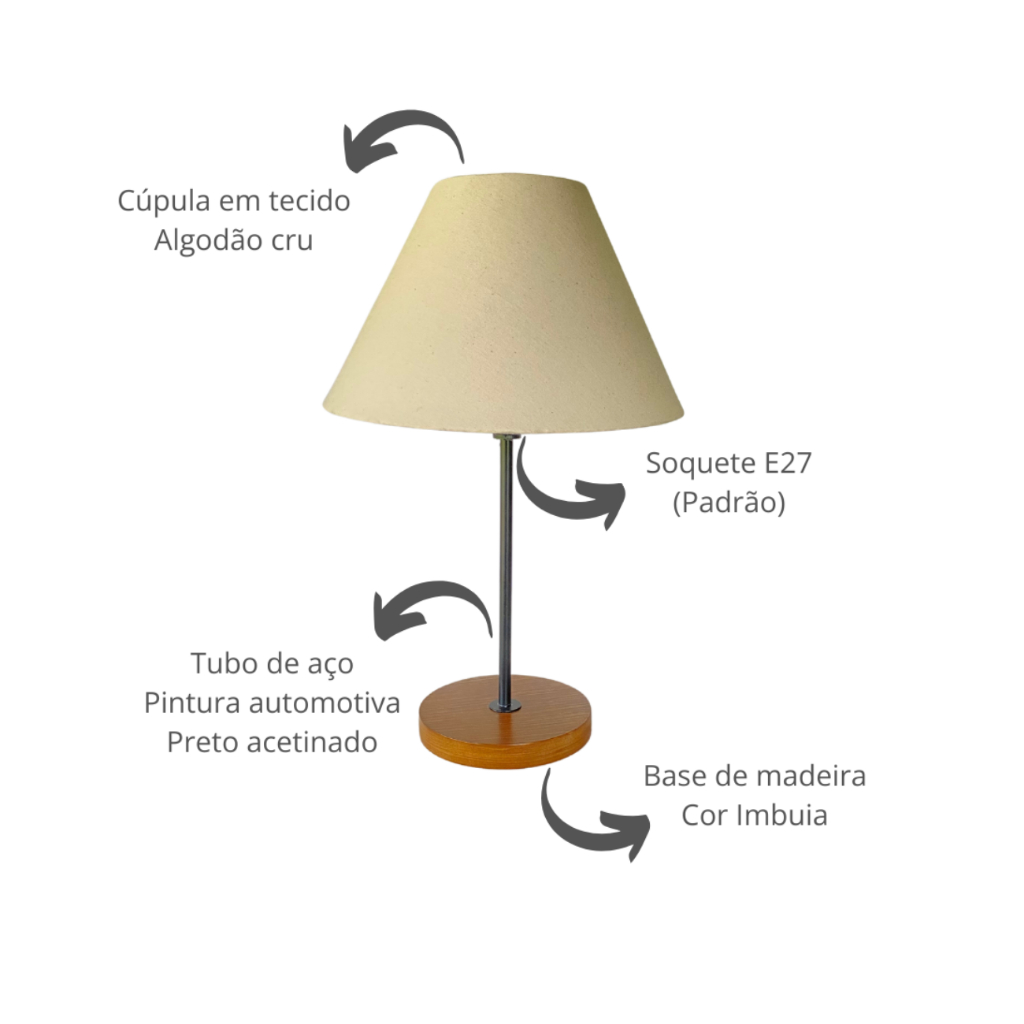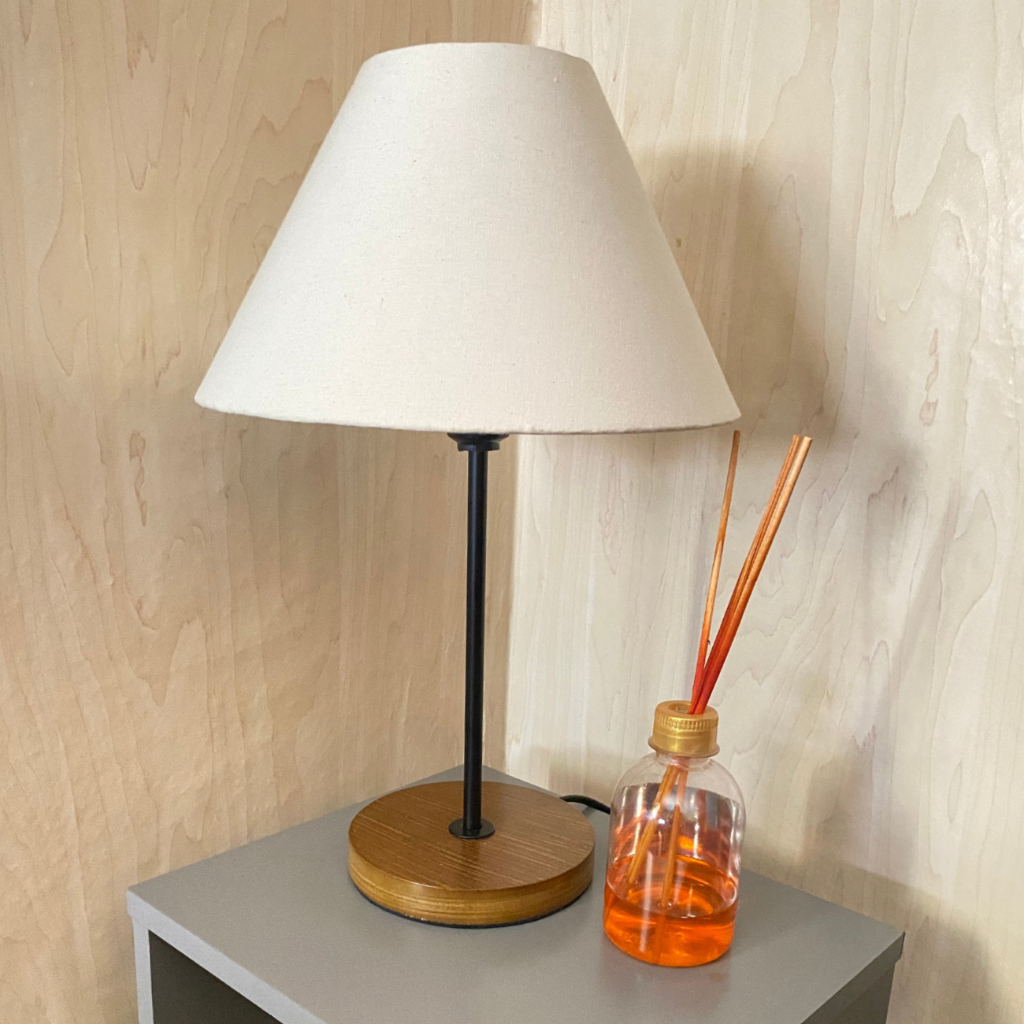 Kit Com 2 Abajur De Mesa Com Base De Madeira Redonda E Cúpula Cônica Revestida Com Tecido