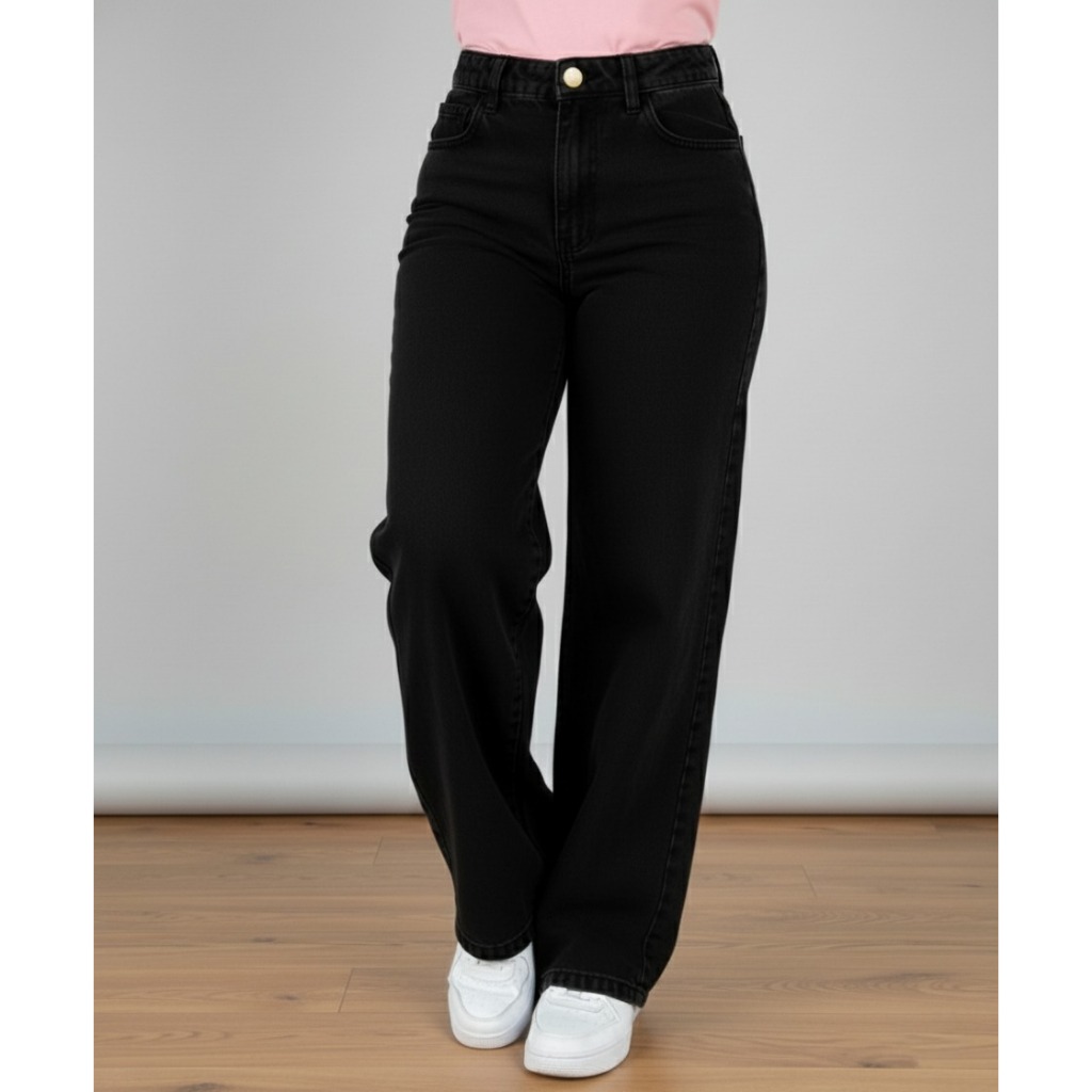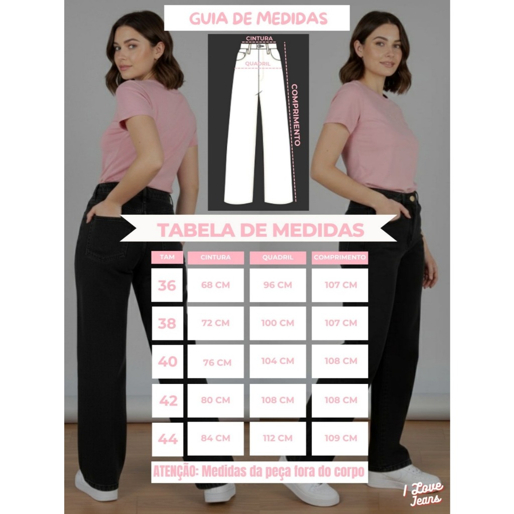 alça Wide Leg Jeans Feminina Premium Cintura Alta Tecido Grosso 100% Algodão