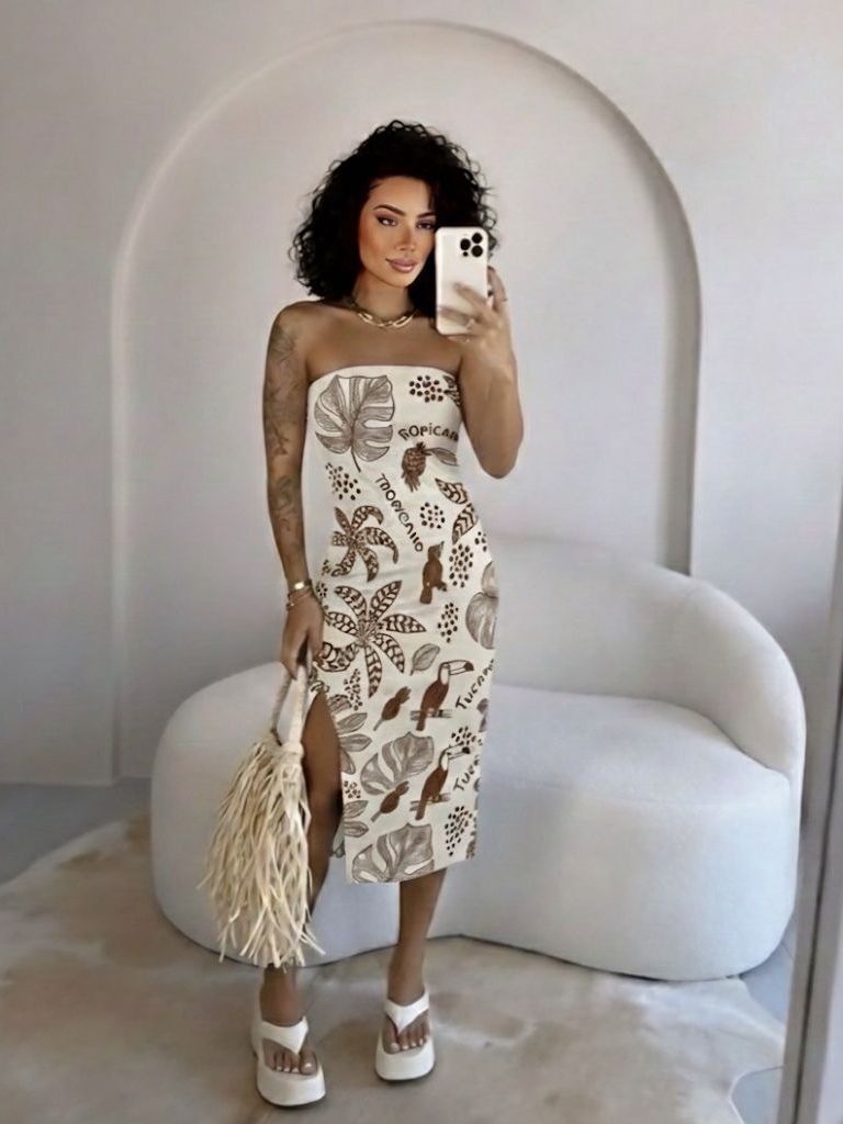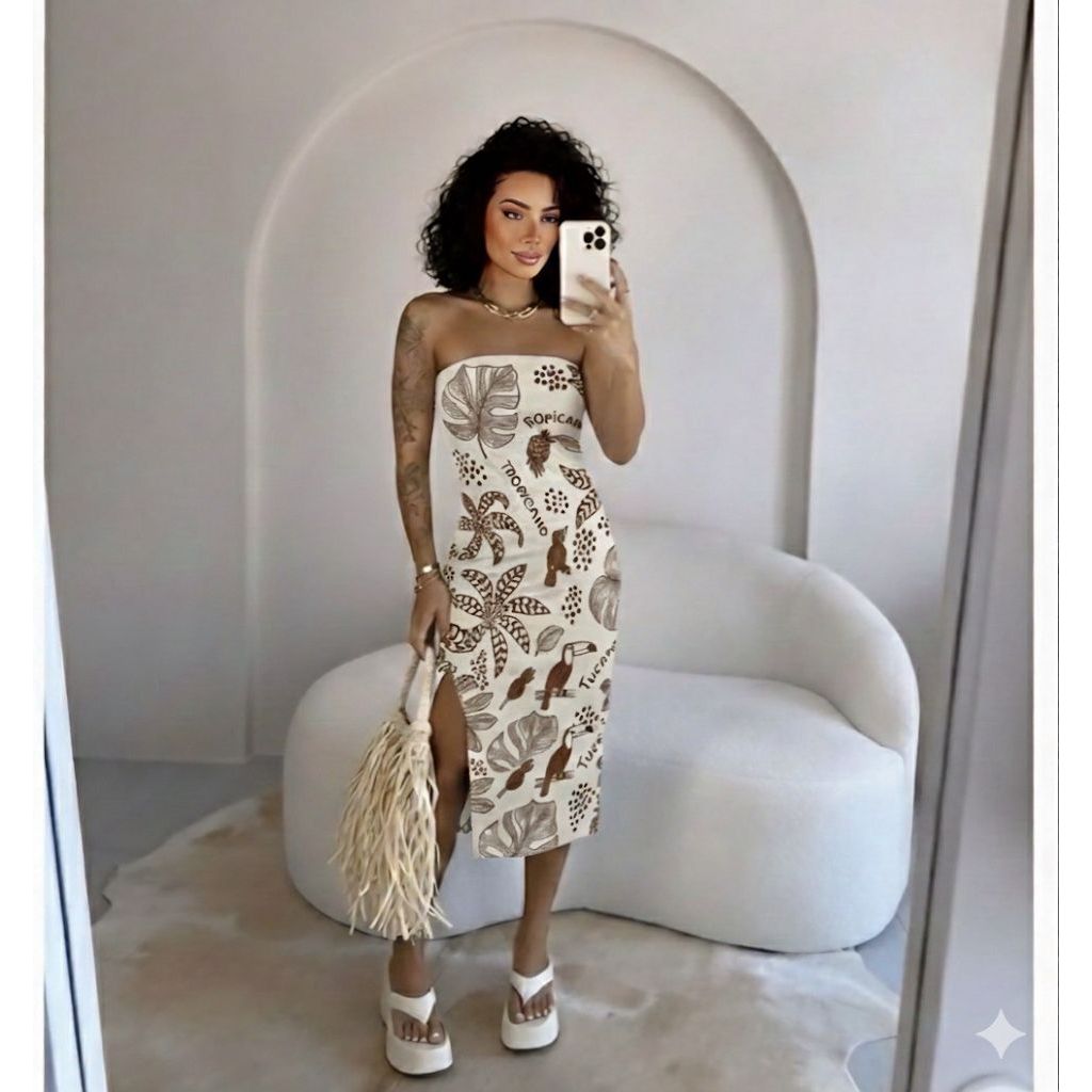 Vestido Feminino Midi Estampado Floral Elegante Tubinho Tomara Que Caia Verão