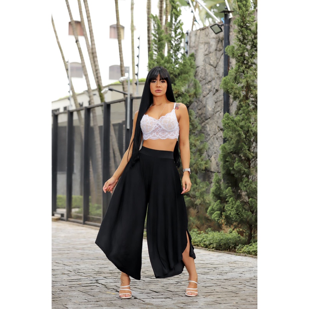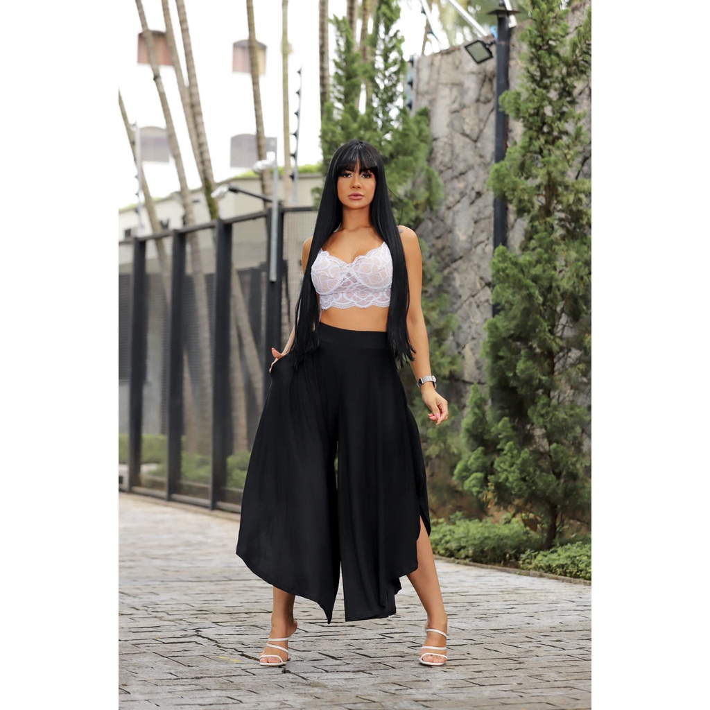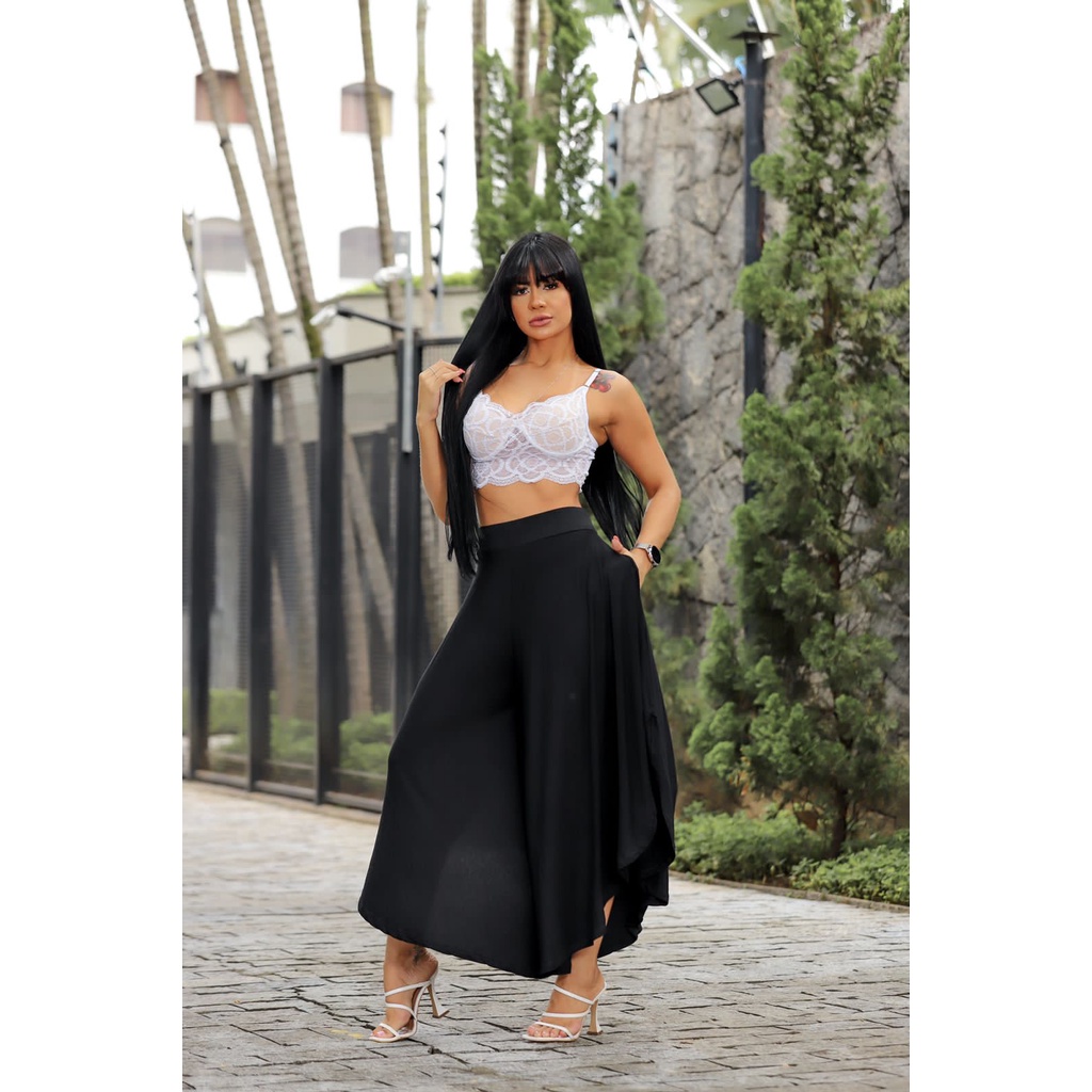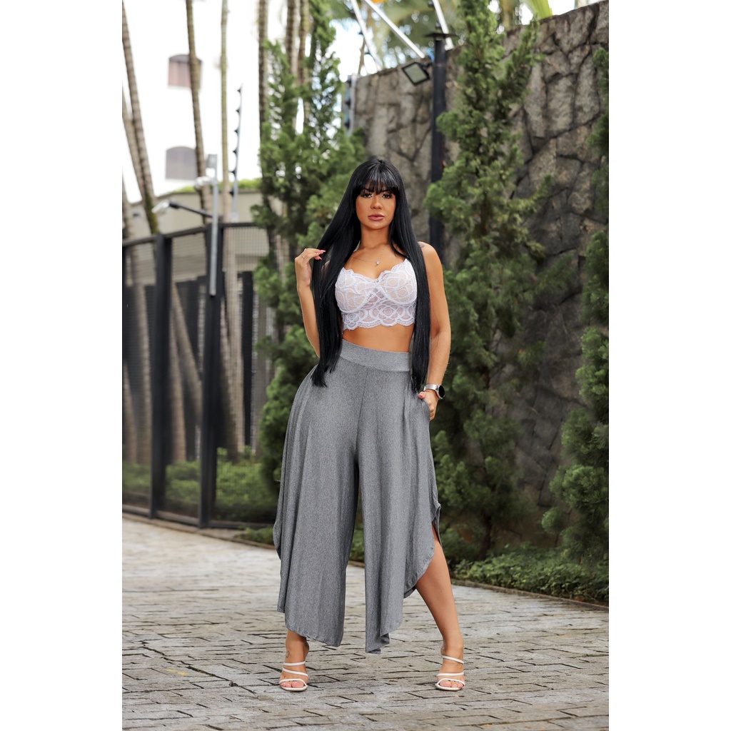 Calça Pantacourt Feminina Pantalona Malha Viscolycra Cintura Alta Calça Saia Godê