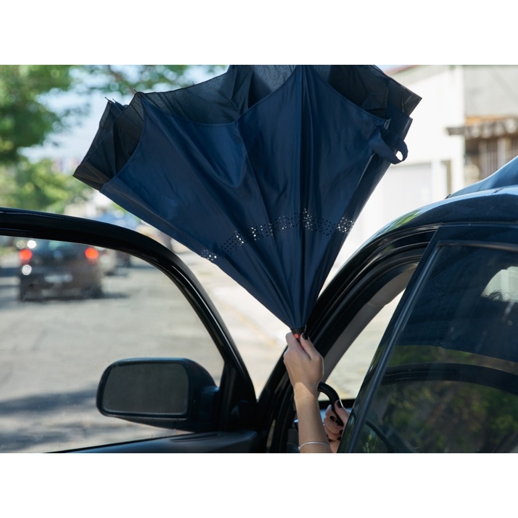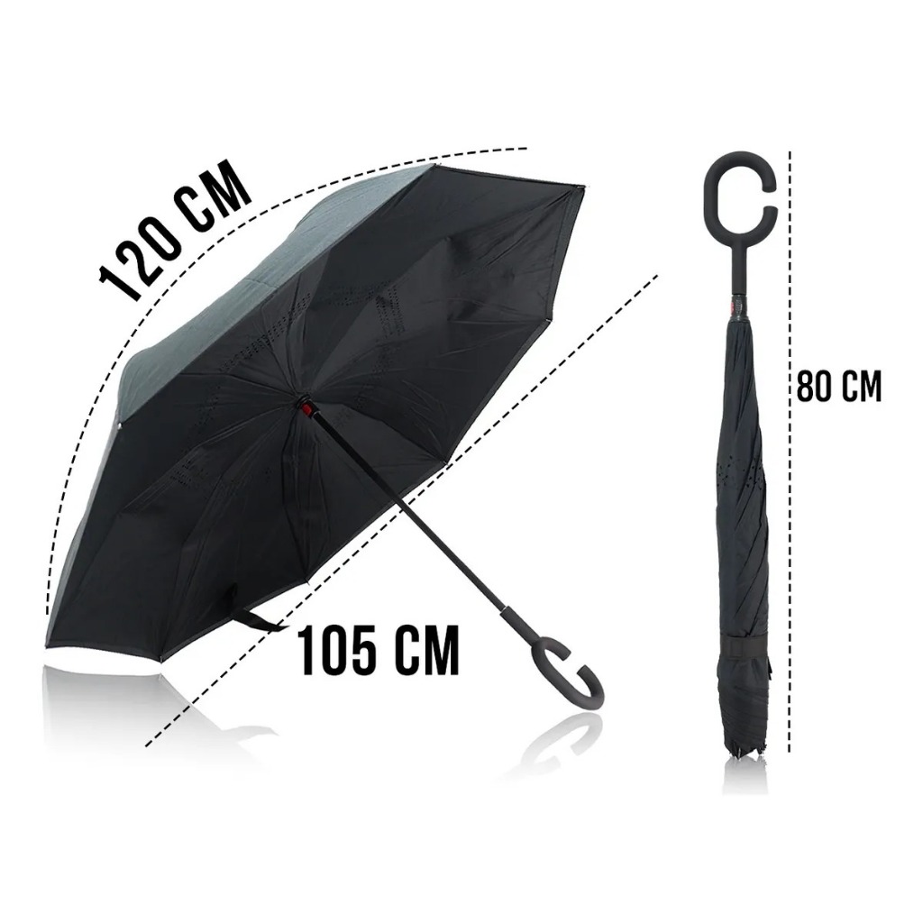 Guarda Chuva Invertido Com Cabo Curvo Emborrachado Duplo Sombrinha Abre Fecha Tecido Estampado 120cm