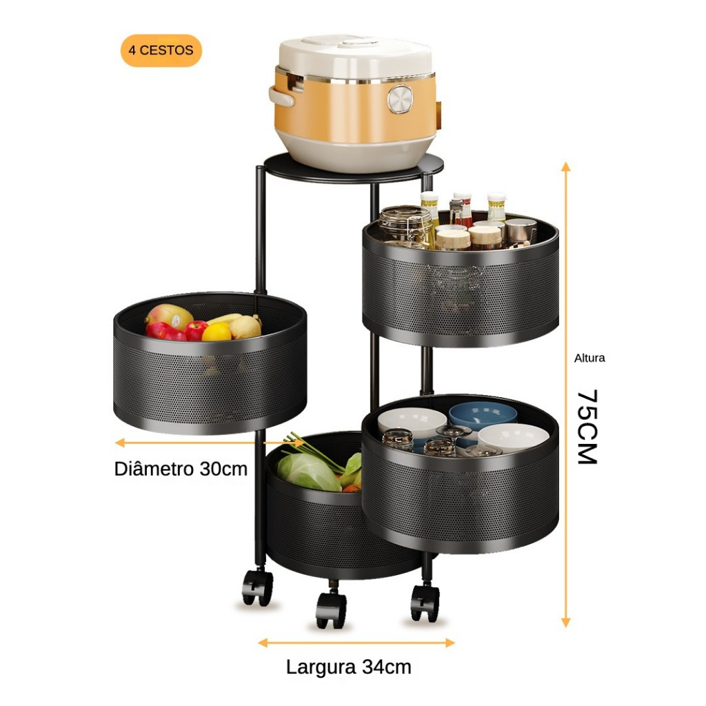 Fruteira de Cozinha Carrinho Organizador Fruteira de Chão Organizador de Cozinha Fruteira de Rodinha