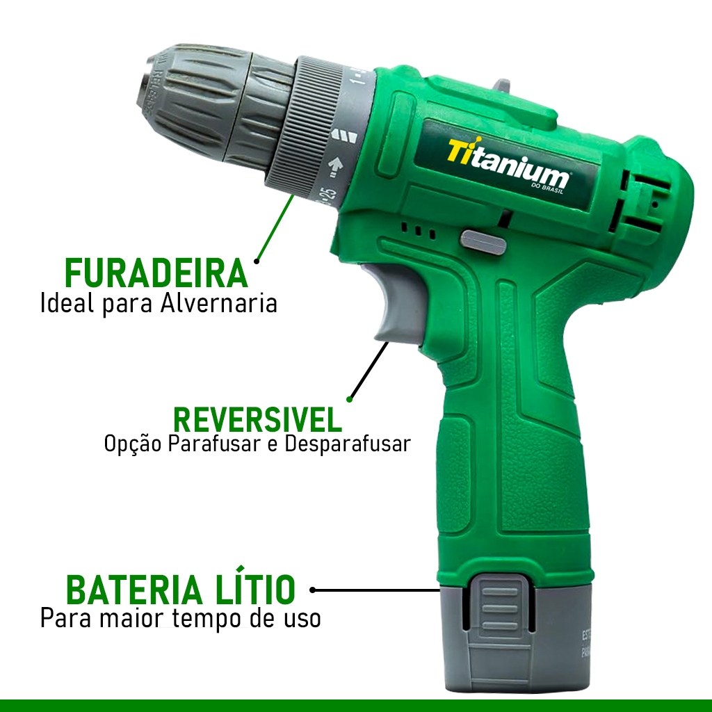Parafusadeira Furadeira 12v Com Bateria Íon-litio Com Carregar Bivolt