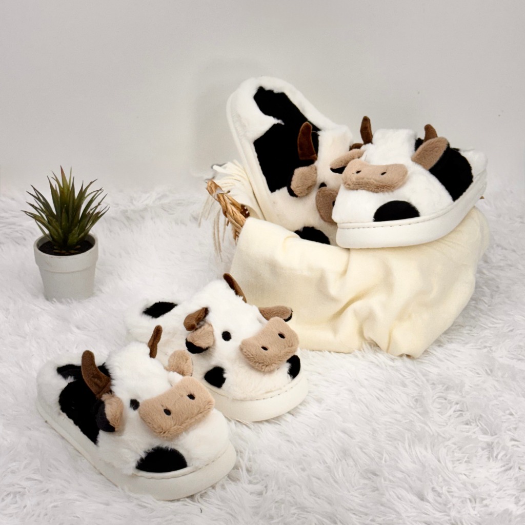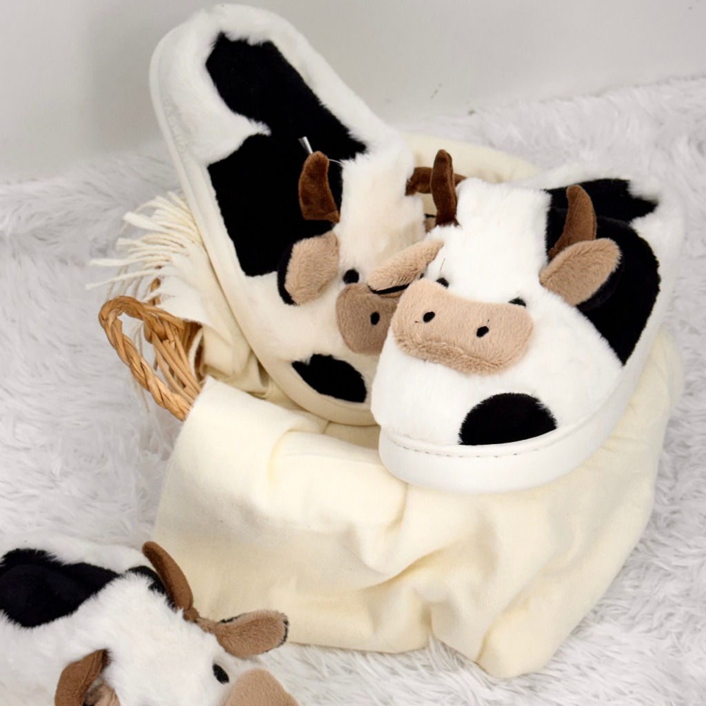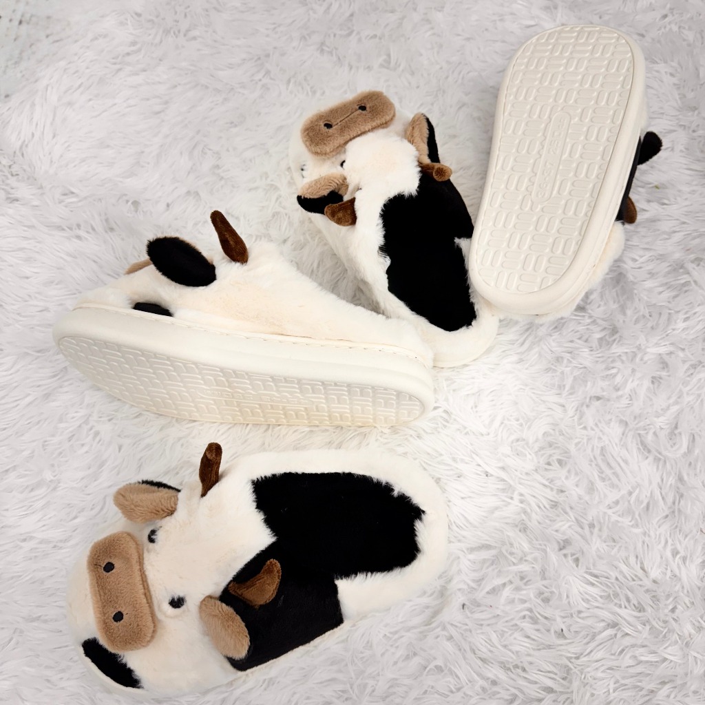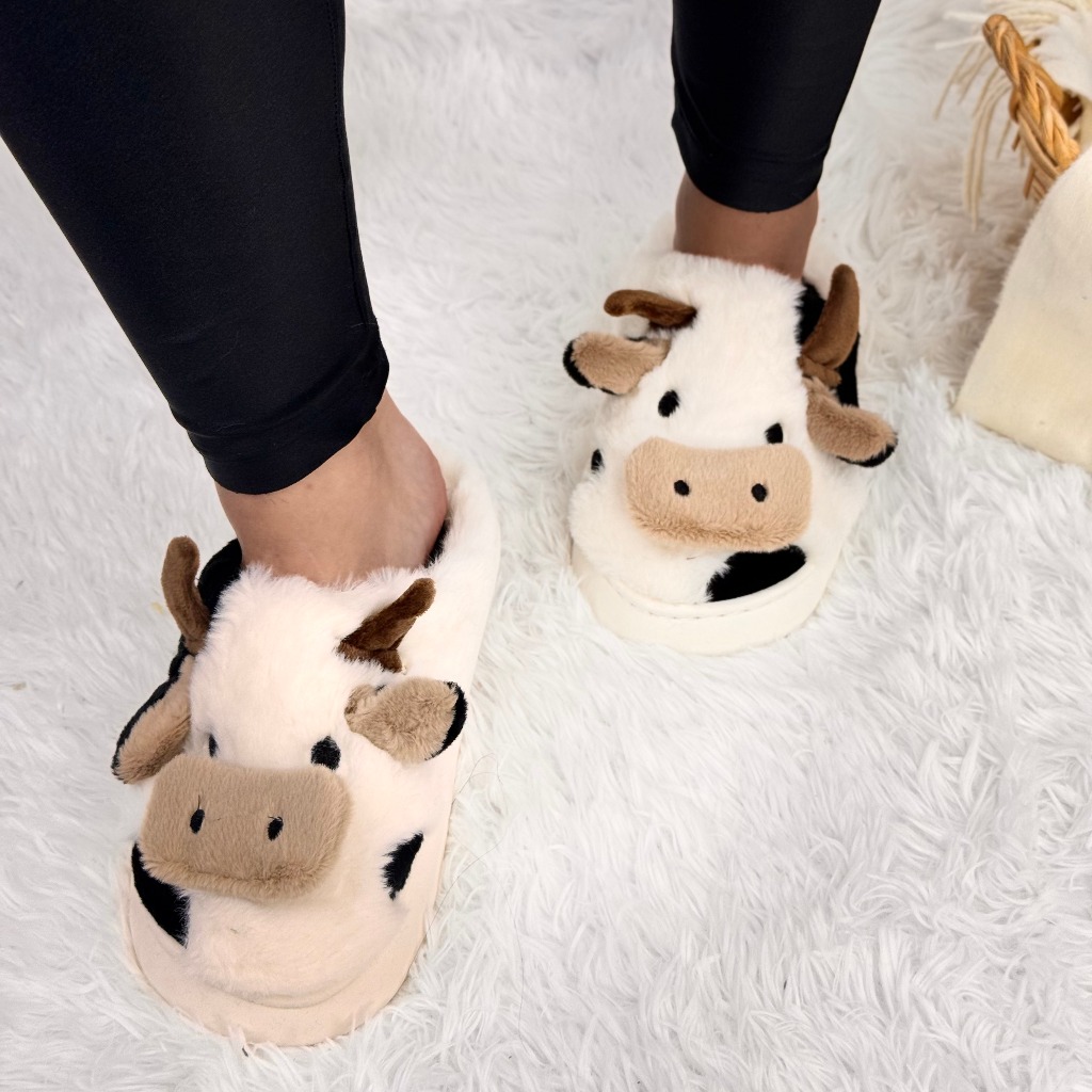 Pantufa de Vaquinha Fechada Sola de Borracha Antiderrapante Confortável Inverno