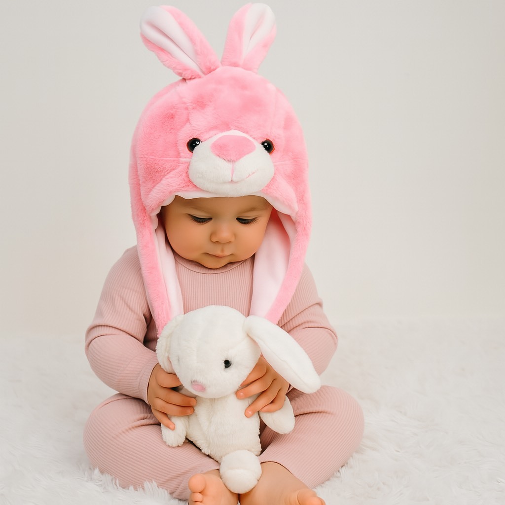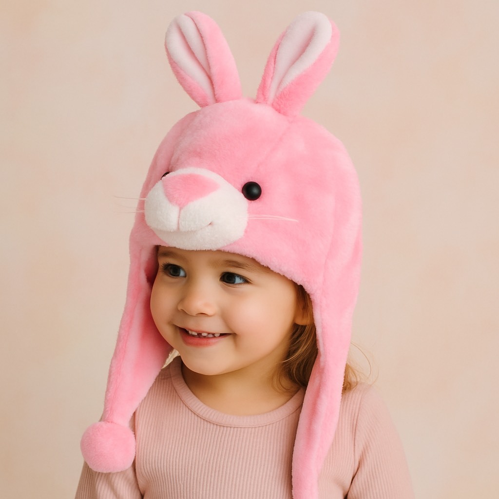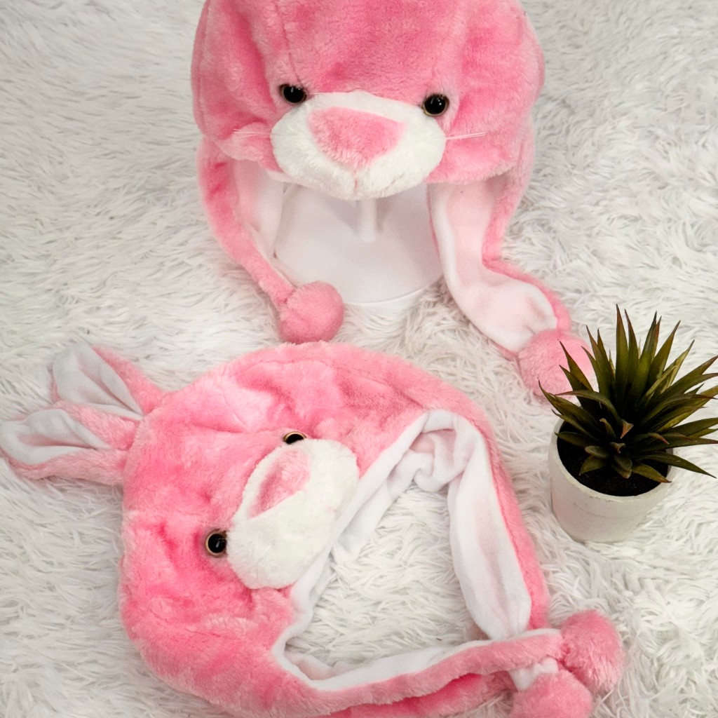 Touca de Bichinho Coelho Rosa de Pelúcia ref:TC-106