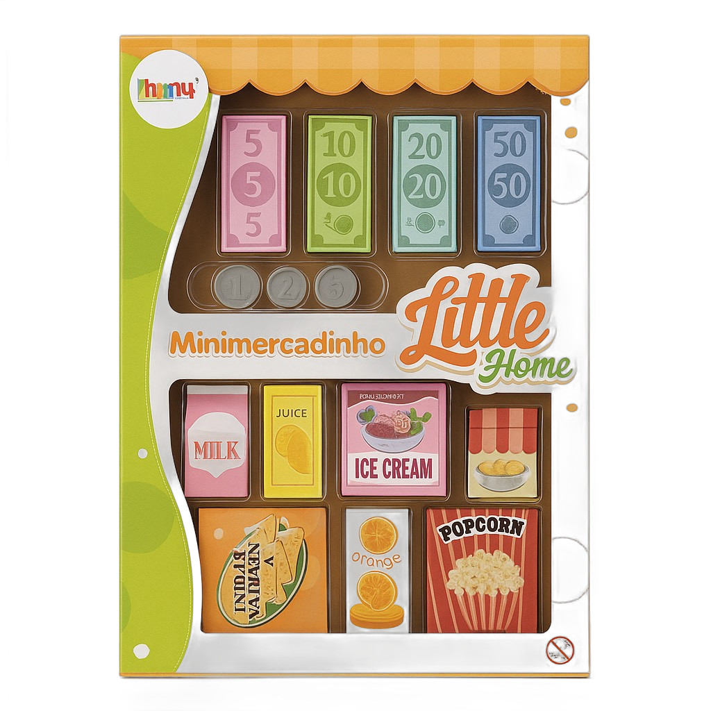 Brinquedo Kit Mini Mercadinho Com Gaveta de Caixa Dinheiro e Comida Faz de Conta