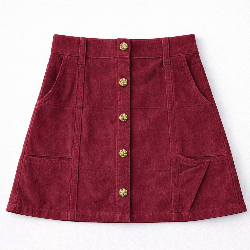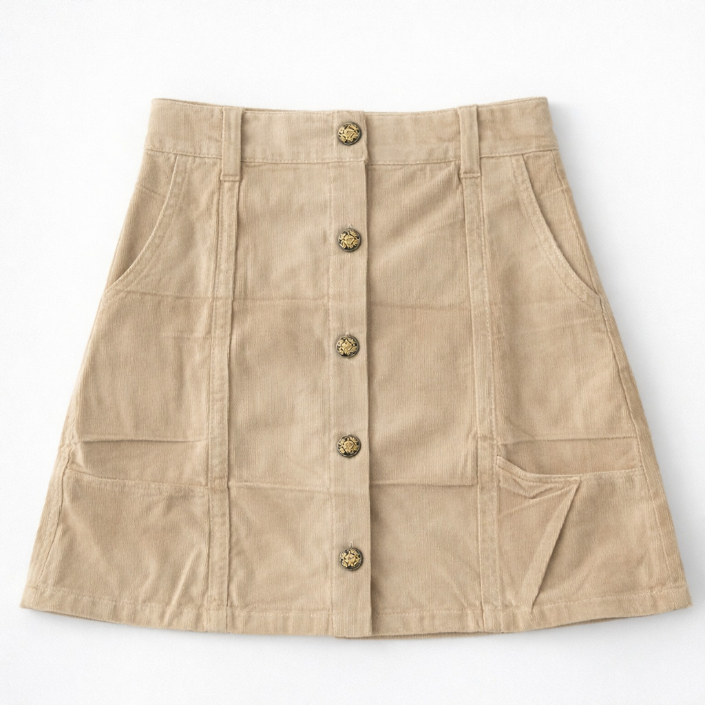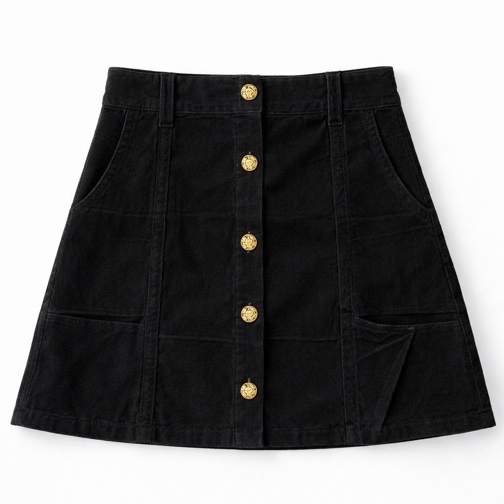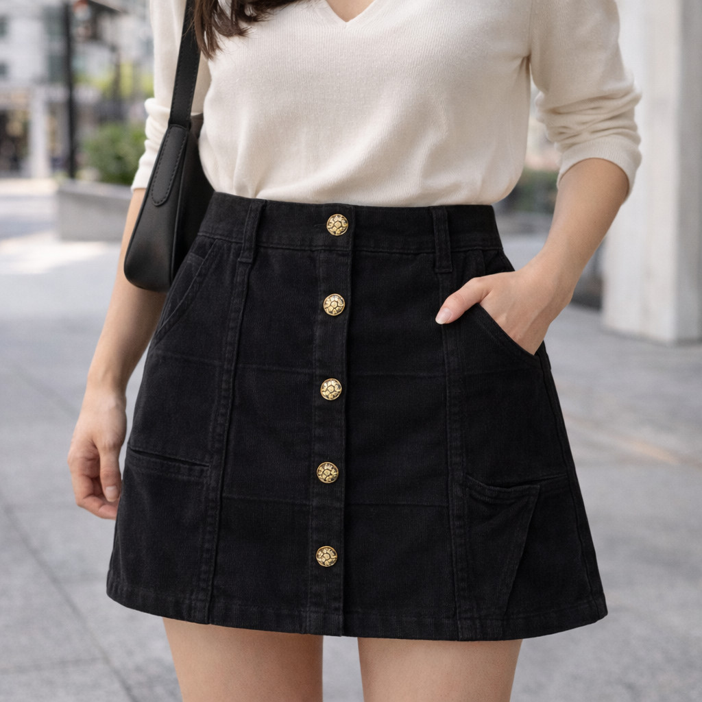 Saia Curta de Sarja Com Botões Frontais Feminina Elegante