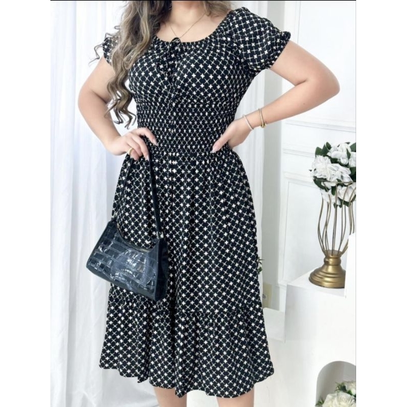 VESTIDO MIDI CIGANINHA COM ELASTEX MODA EVANGELICA CRISTA VESTE ATE 42