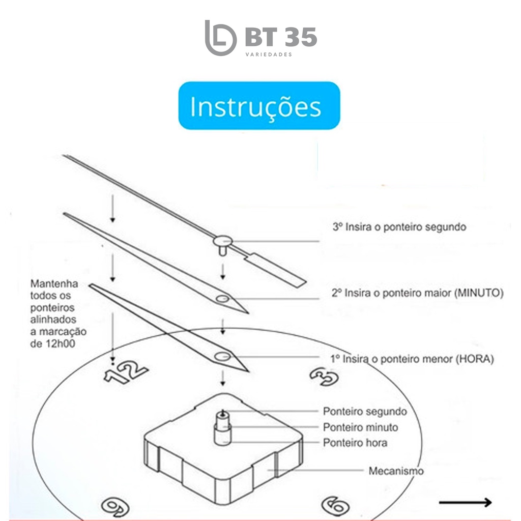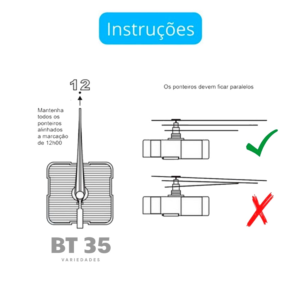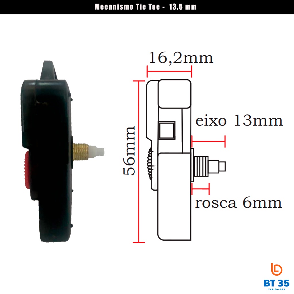 01 Maquina de Relógio de Parede Tic Tac 13 mm C/ Ponteiros - Mecanismo de Relógio de Parede 13mm