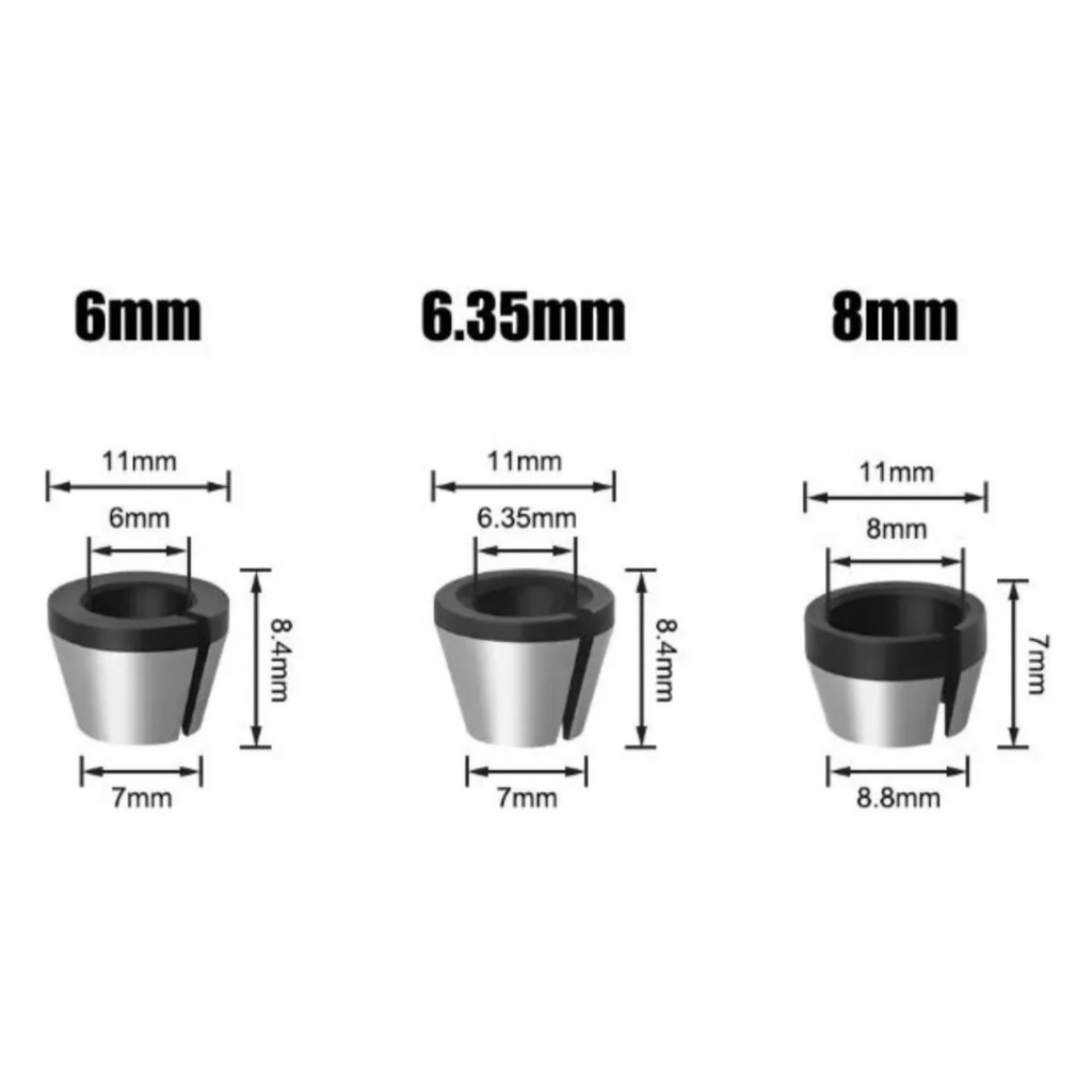 Pinça Para Tupia 6mm - 1/4 - 8mm Adaptador Tupia 3 pçs