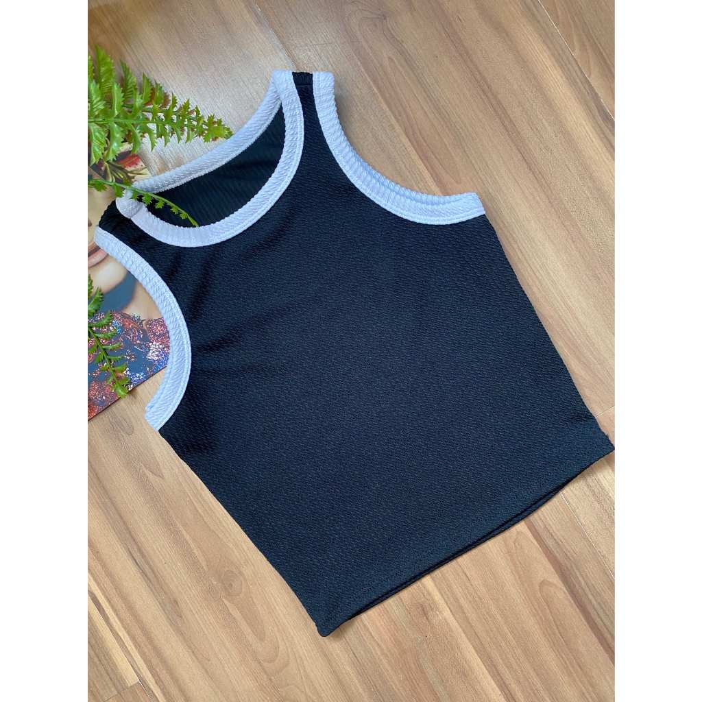 Top Cropped Regata Bicolor PeB Casual Fashion Moda Academia Dia a Dia Estilosa