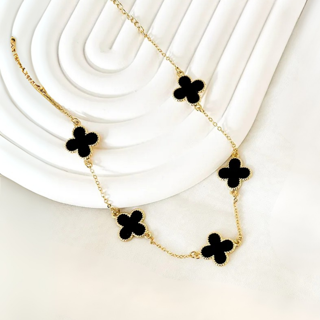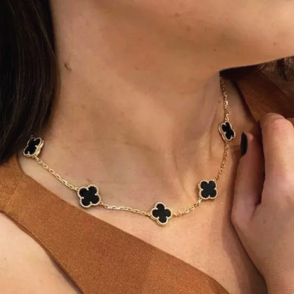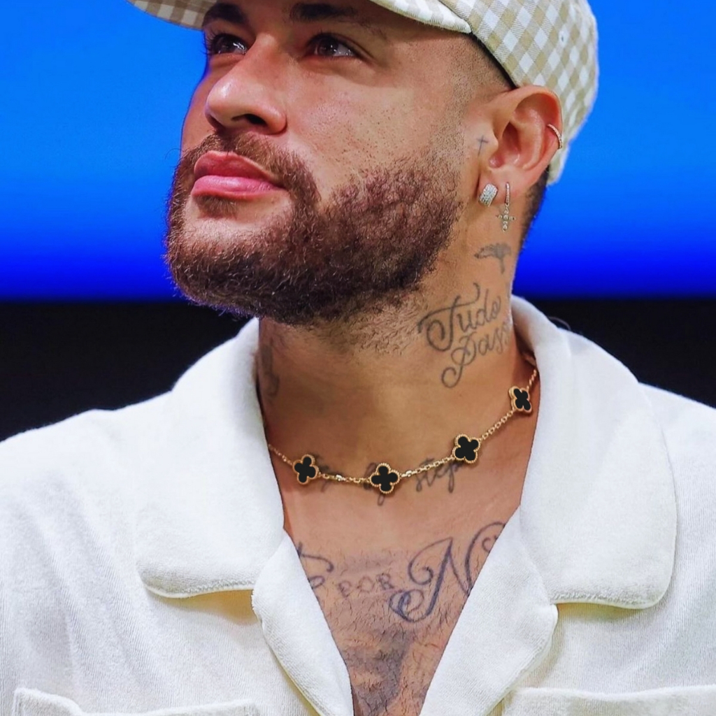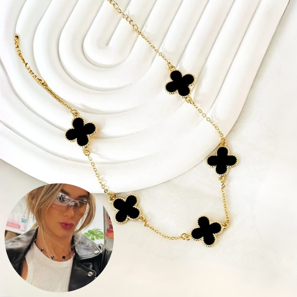Corrente choker trevo amuleto sorte inspiração famosos dourado