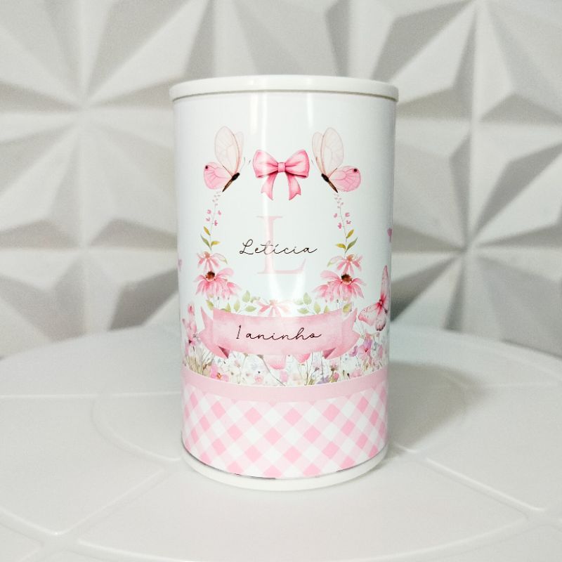 Kit Livrinho de Colorir Giz de Cera e Cofrinho Lembrancinha Mimo Jardim Borboletas