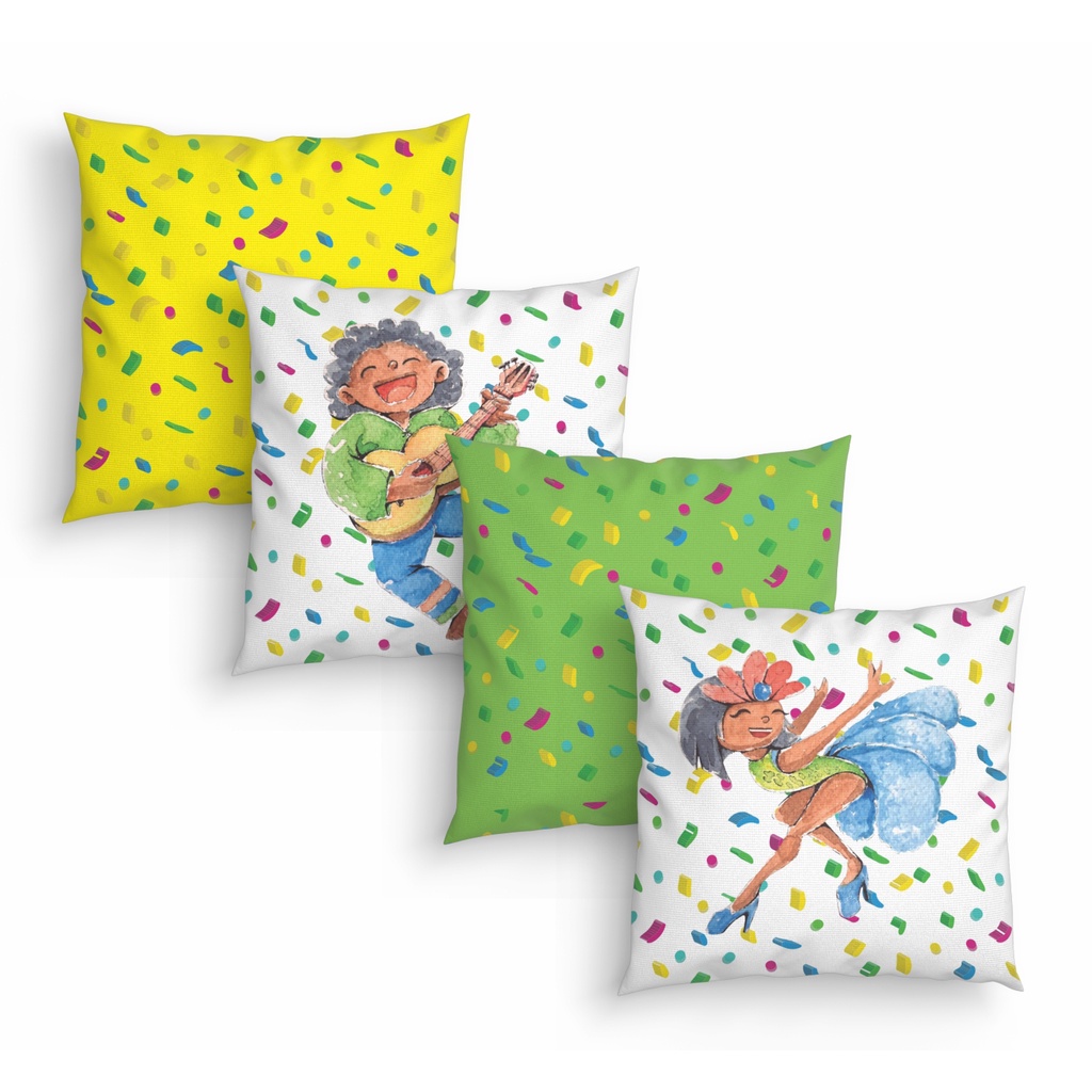 Kit 4 Capas de Almofadas Decorativas 45cm Carnaval Aquarela